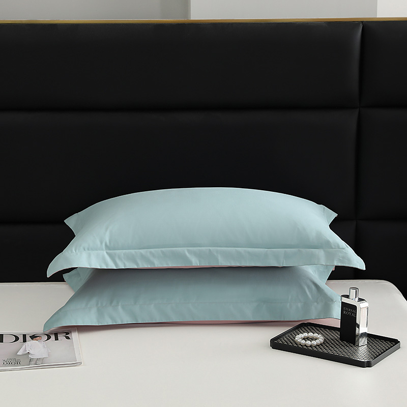 商品名称:莱阁亿 2025秋冬新款高支高密全棉纯棉磨毛双拼纯色单枕套 枕套单件 森林绿&藕粉