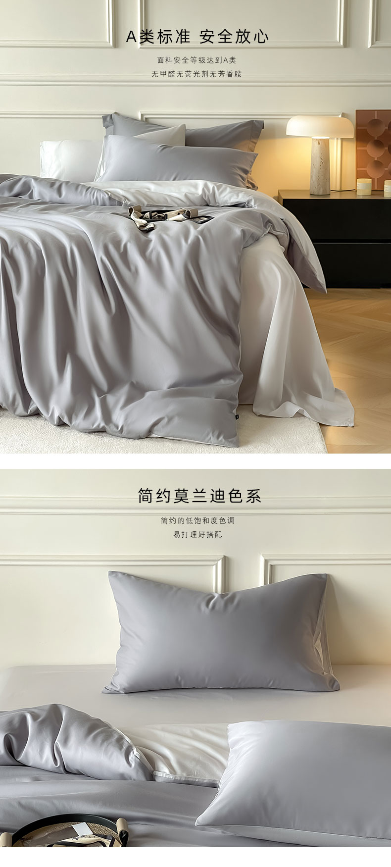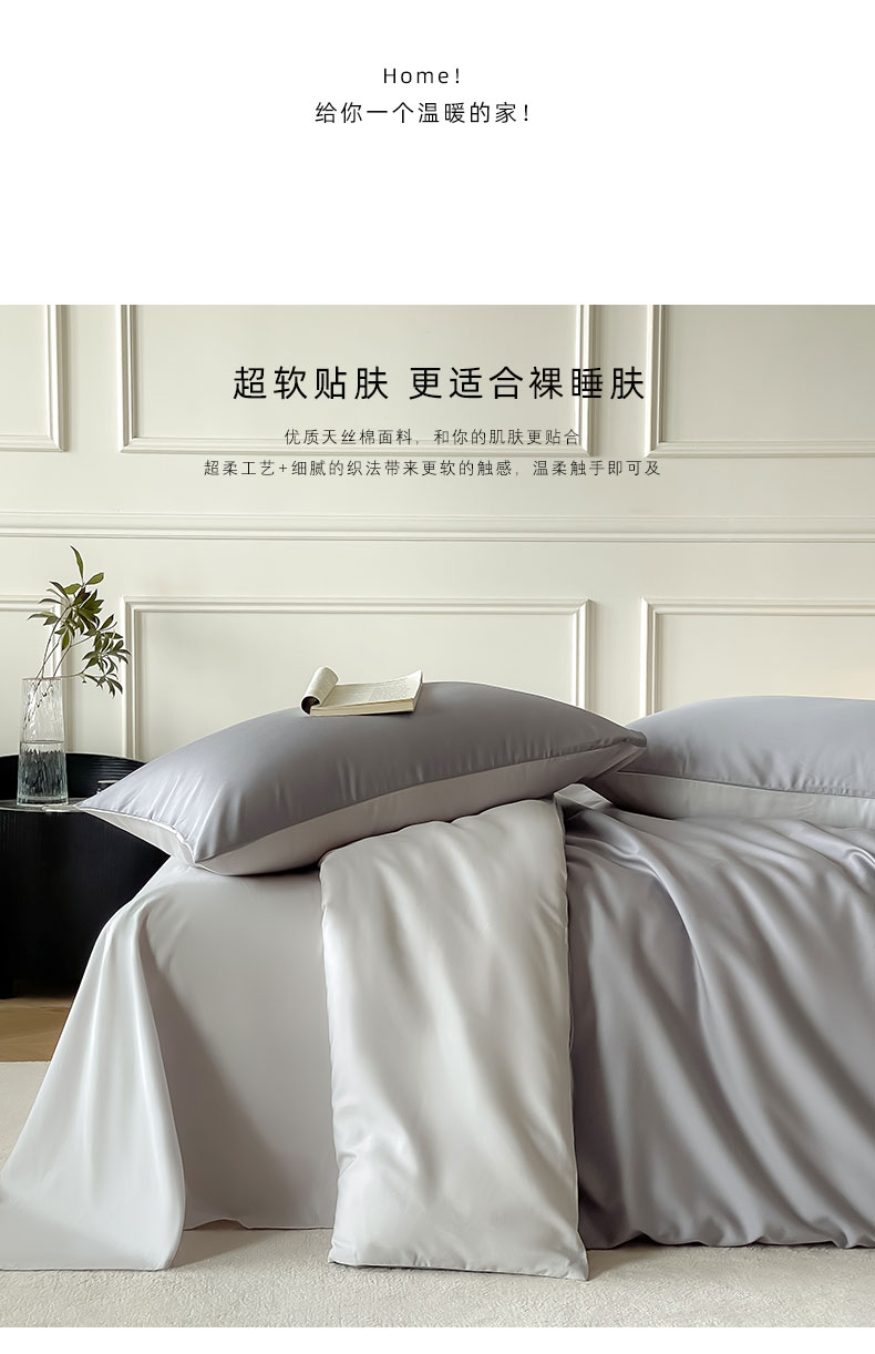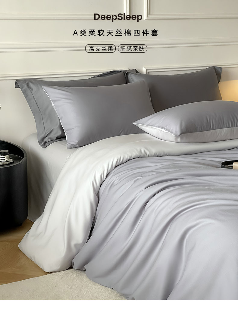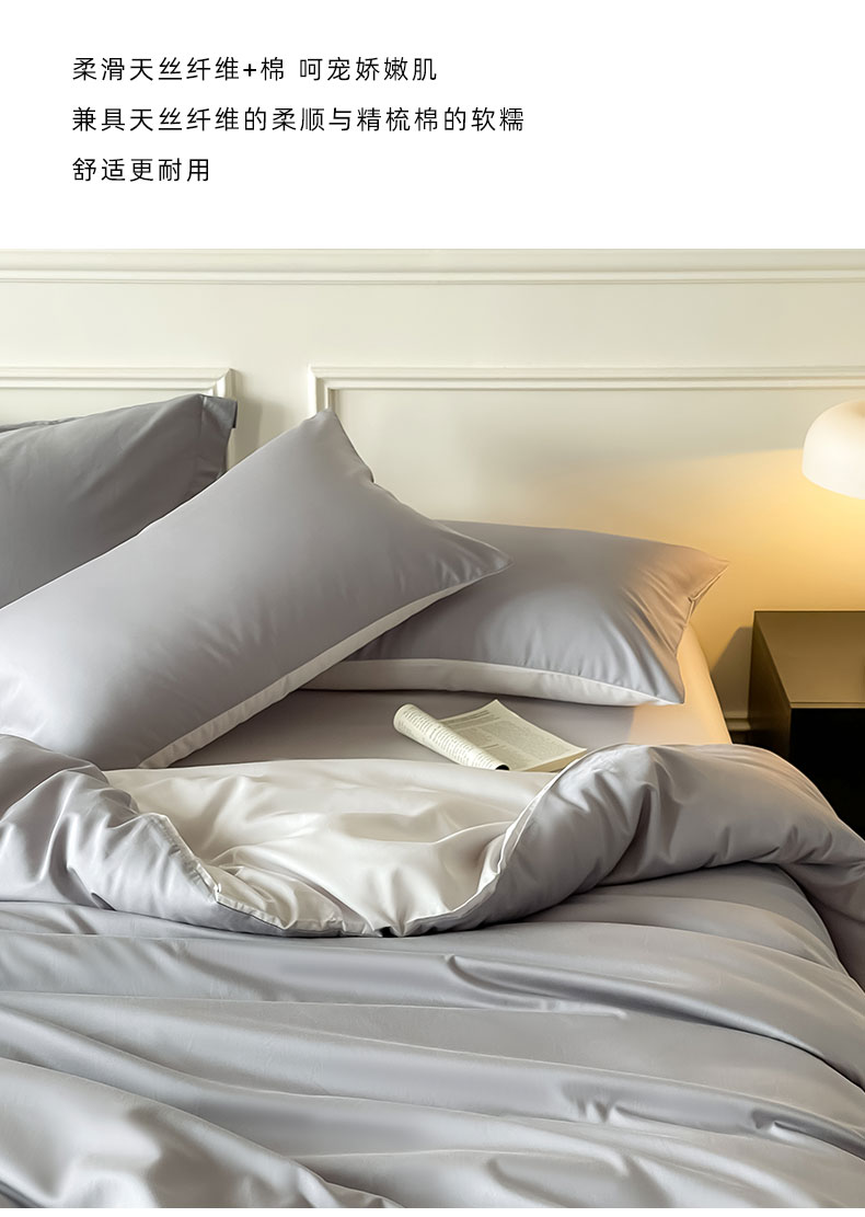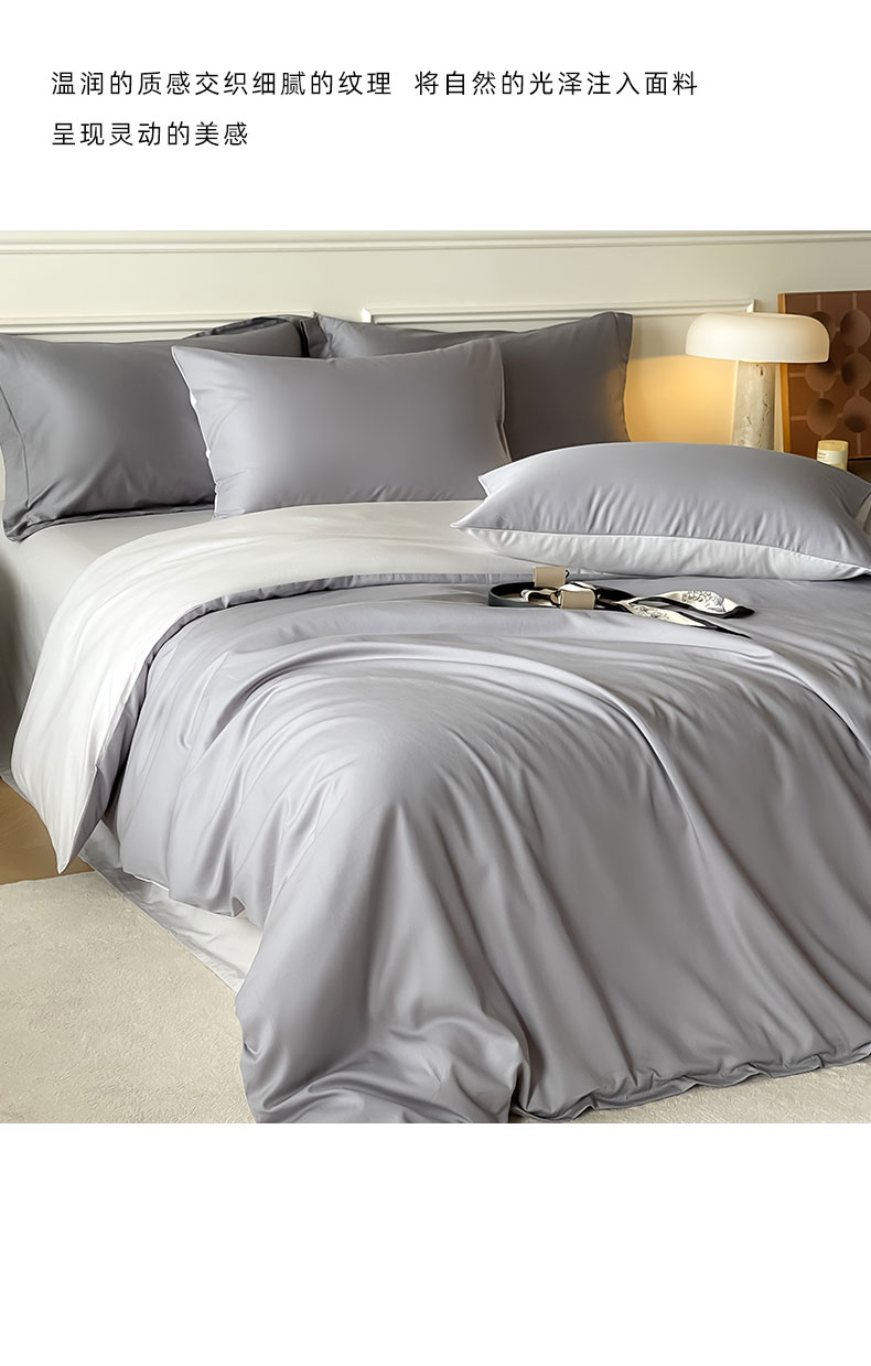 商品名称:Mr.pig猪先生水洗棉 2024新款天丝棉纯色四件套 芋泥紫+朦胧灰