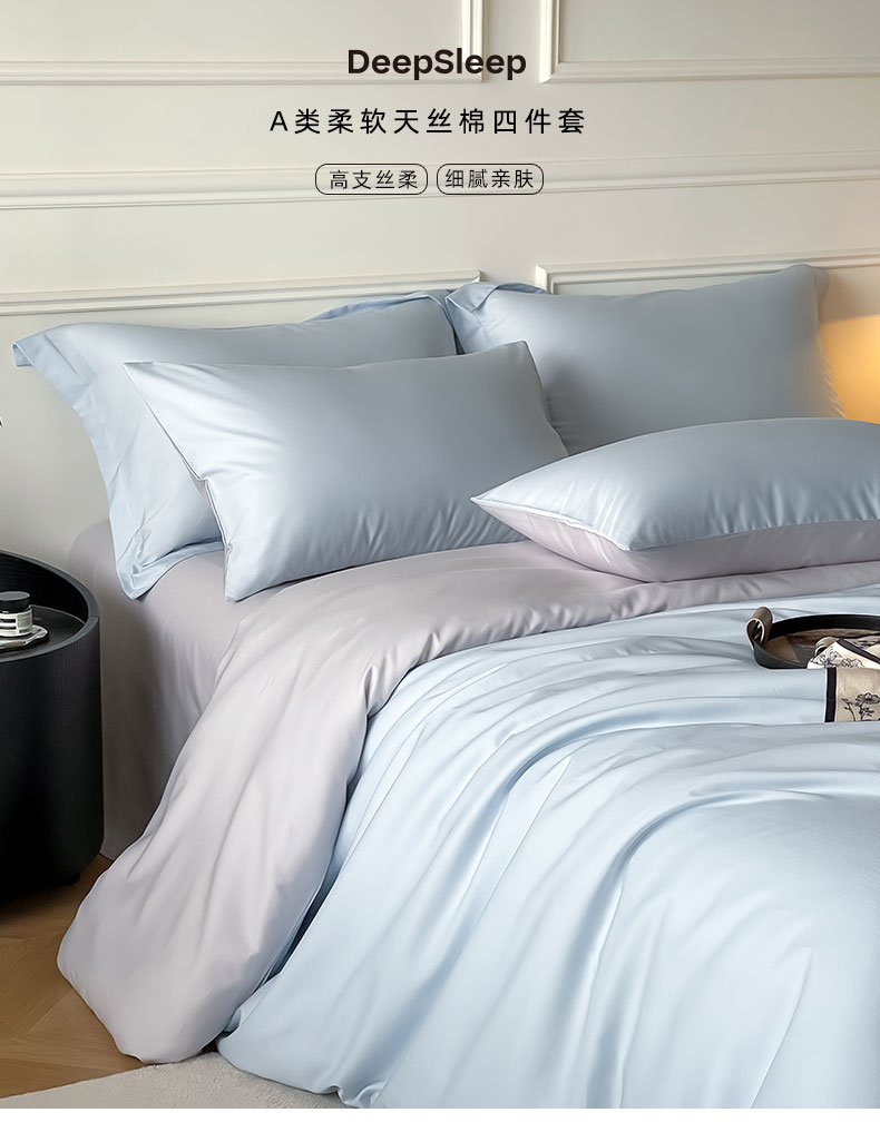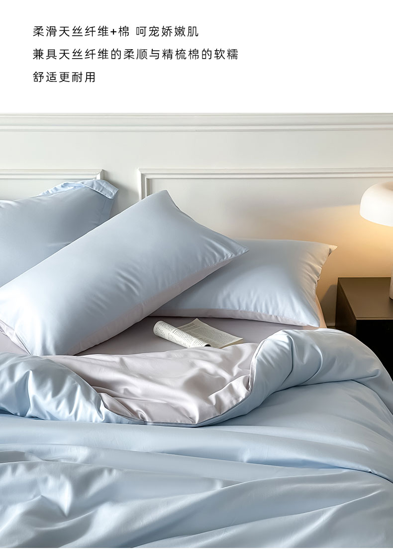 商品名称:Mr.pig猪先生水洗棉 2024新款天丝棉纯色四件套 纯净蓝+朦胧灰