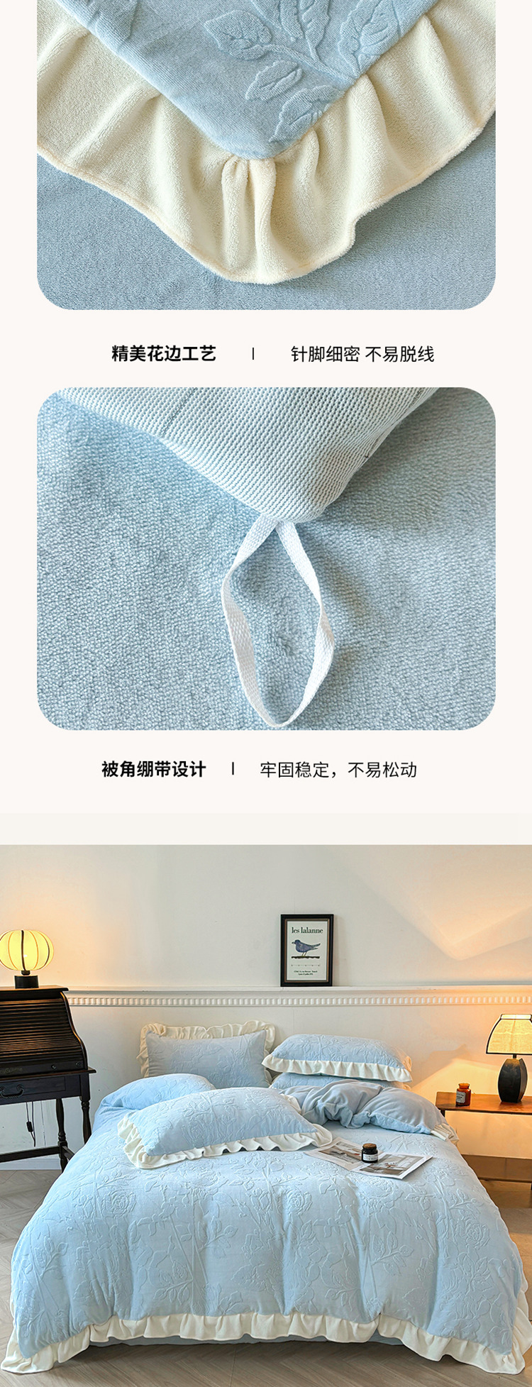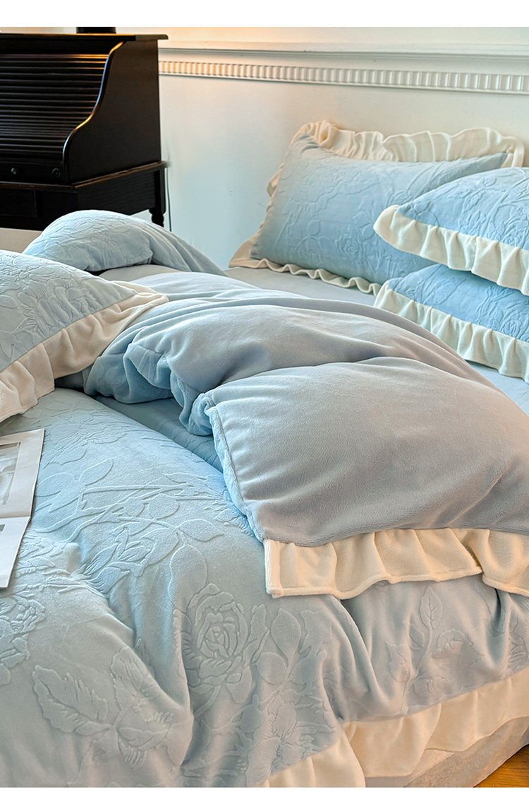 商品名称:大境 2024新款维也纳牛奶绒提花四件套维也纳-蓝