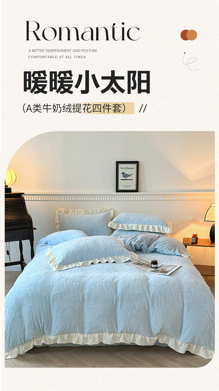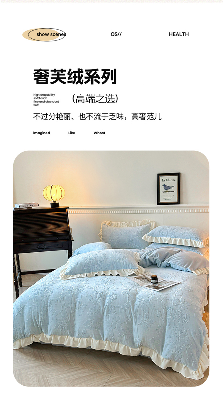(总)大境 2025秋冬新款A类230克牛奶绒雕花烂花绒宝宝绒床笠款床单款四件套,蝶恋花语,花恋,浪漫花香 粉,浪漫花香 绿,叶之恋,郁金香粉,月光森林