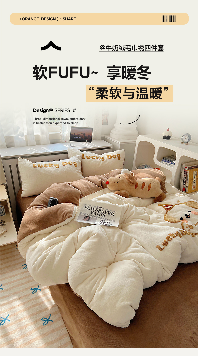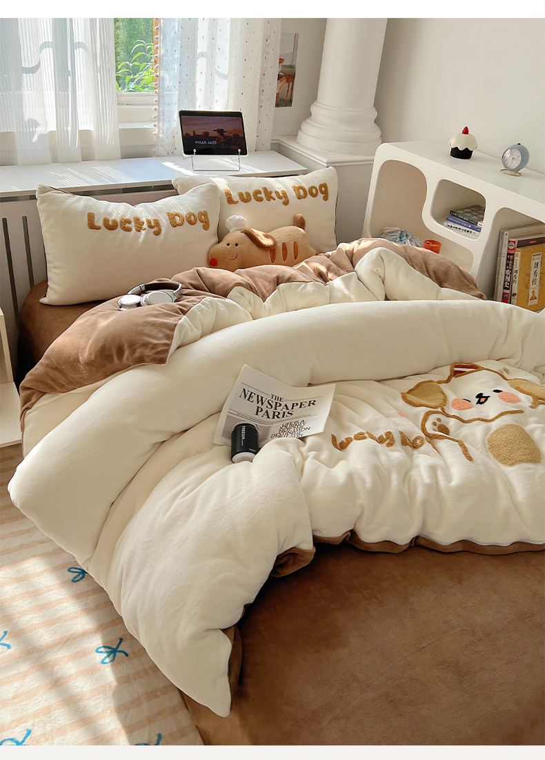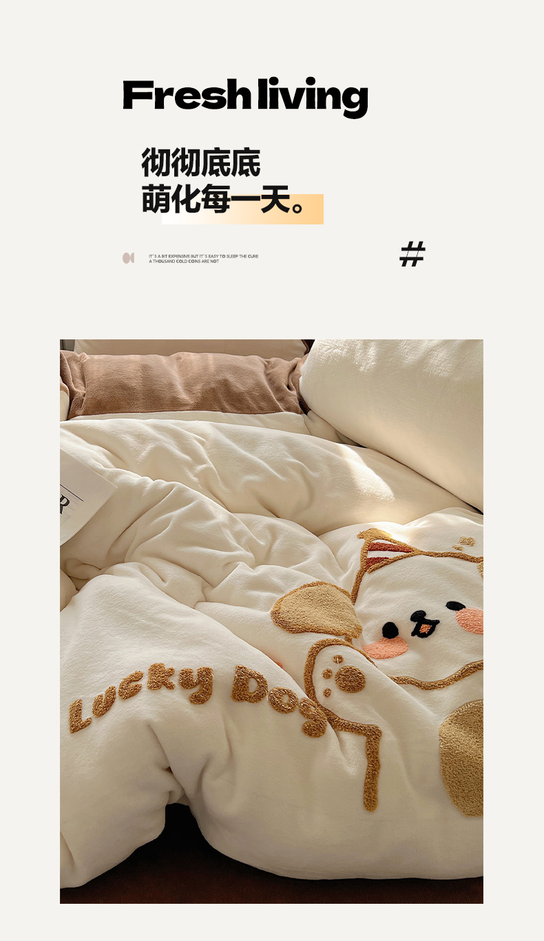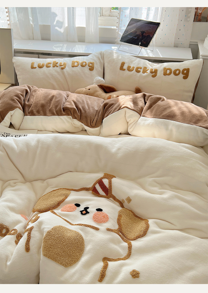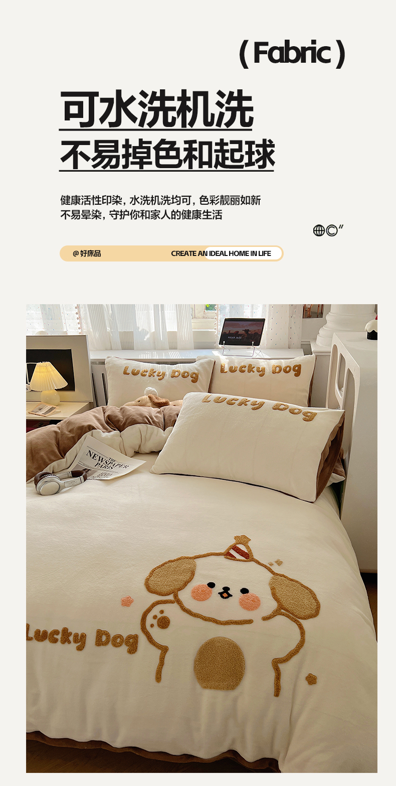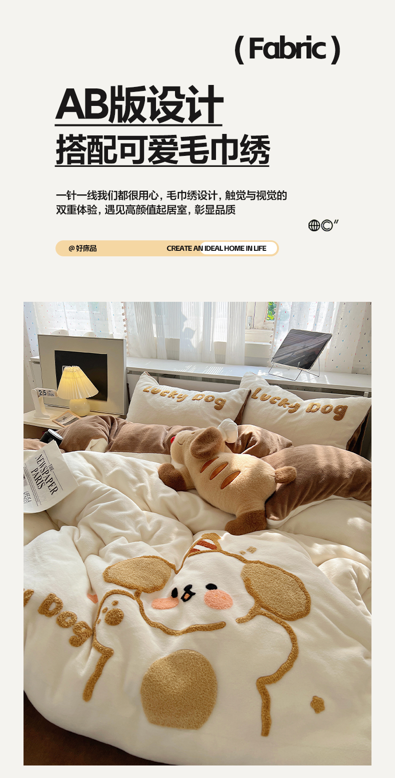 雅居纺家纺 2024新款大版毛巾绣牛奶绒四件套 LUCK-小狗