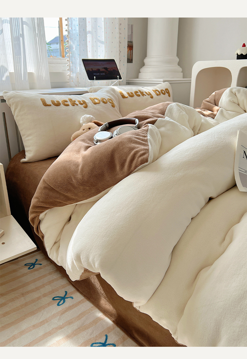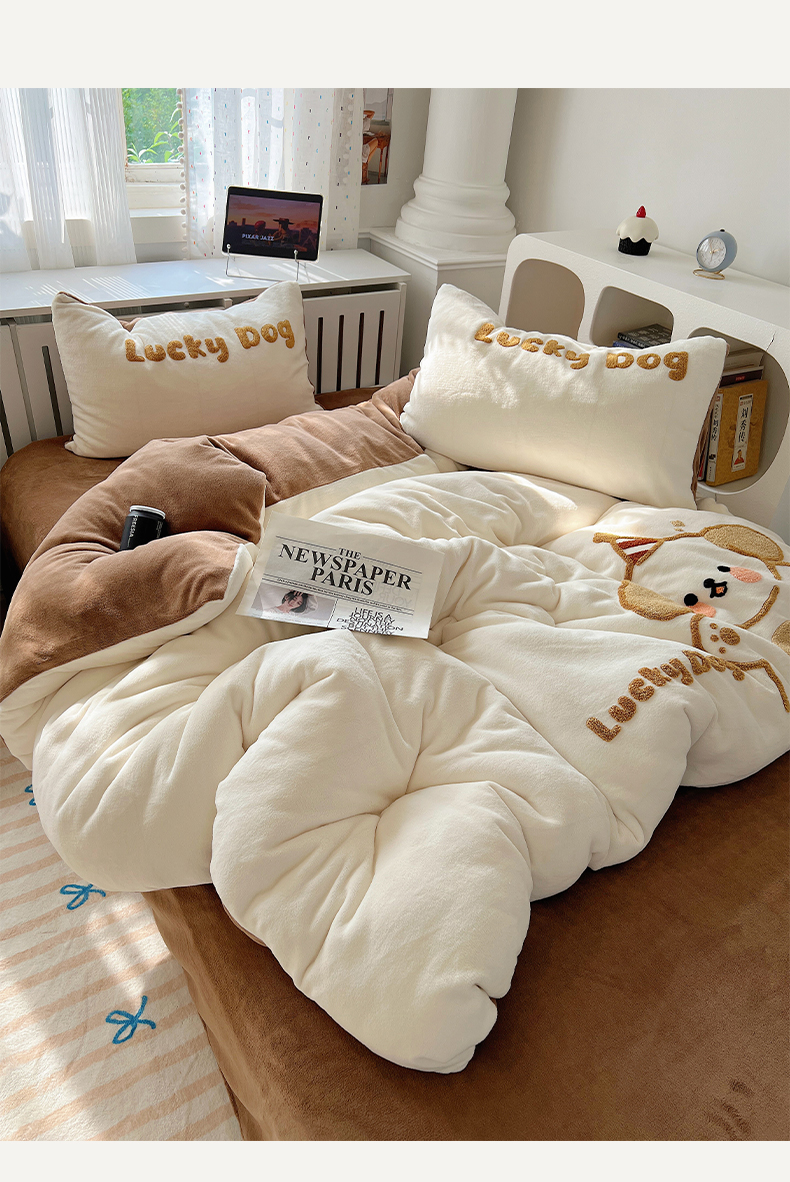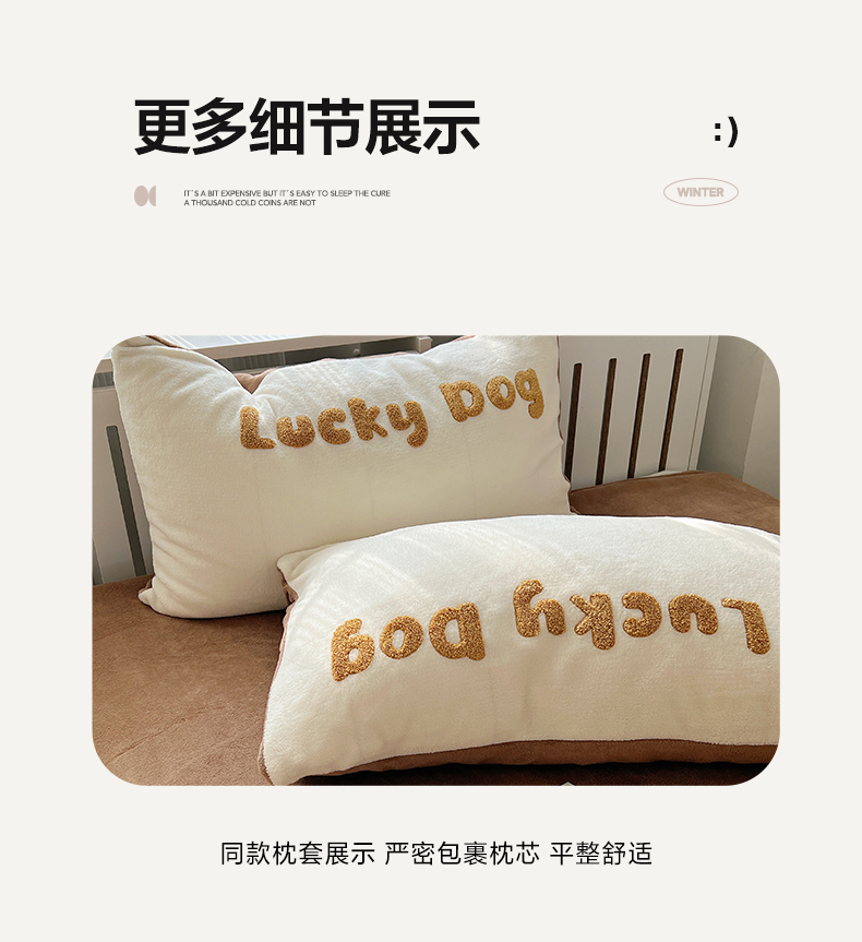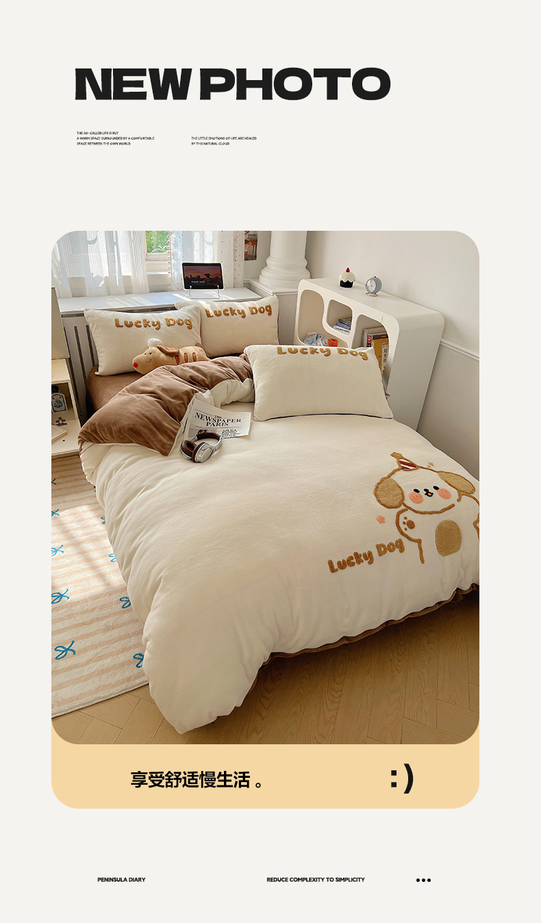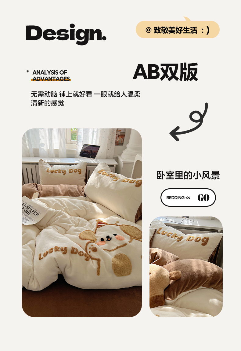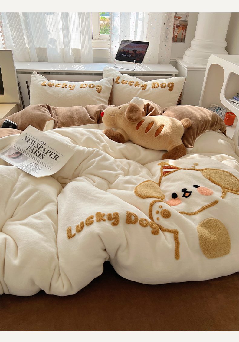 雅居纺家纺 2024新款大版毛巾绣牛奶绒四件套 LUCK-小狗