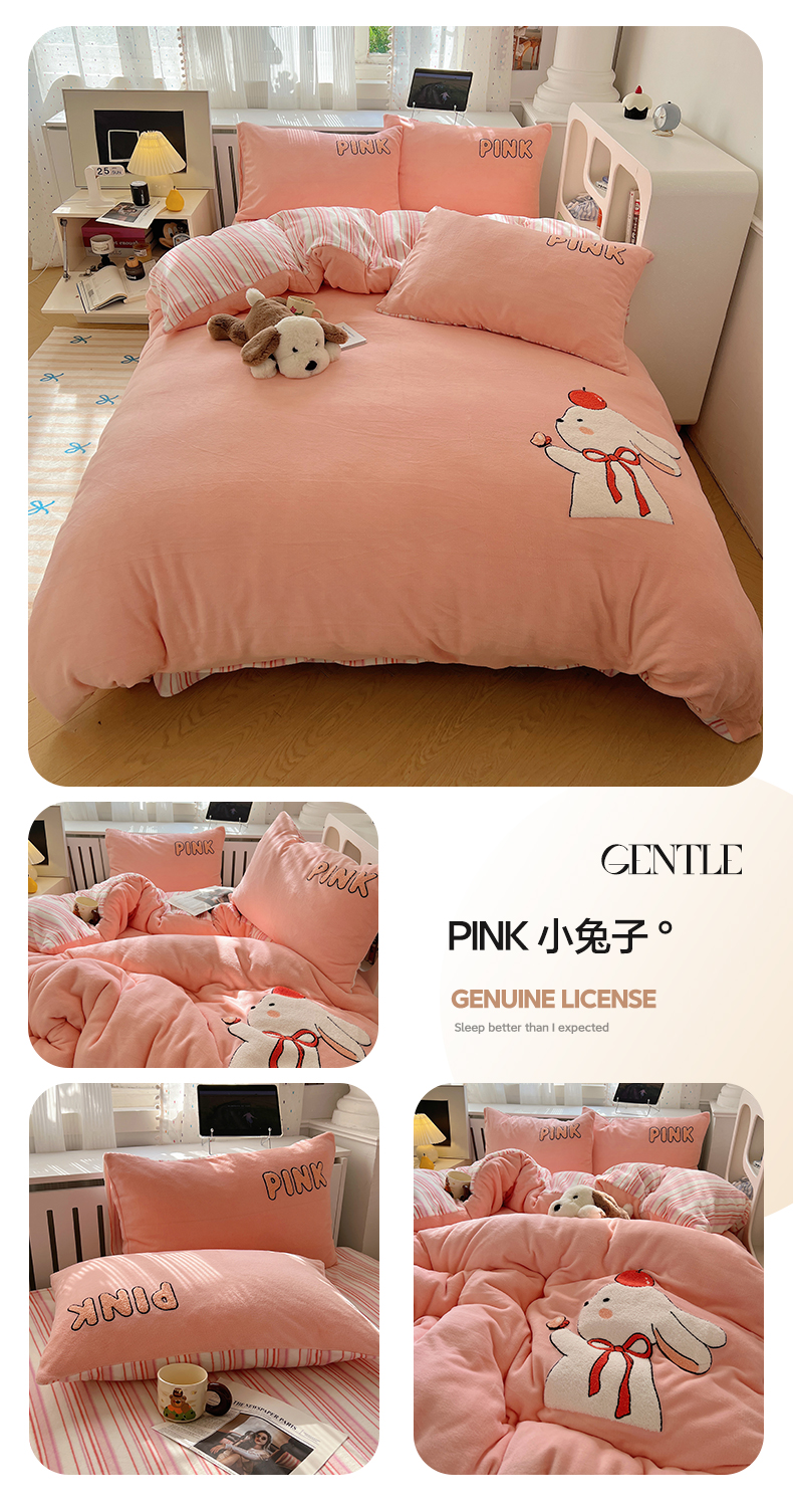 (总)雅居纺家纺 2025新款高克重牛奶绒印花四件套,M粉,爱心恐龙,粉粉桃,粉色竖条,乖乖兔,蝴蝶结-粉,蝴蝶结-蓝,幻境-粉,简约绿条,经典豹纹,咖色竖条,开心龙,蓝墨花朵,蓝色竖条,蓝色小兔,蓝条猫咪,浪漫花香,秘境小兔,时尚爱心,树叶小兔子,竖条小花,四宫格,仙草,小煤球,幸运兔,休闲小兔,宇航熊