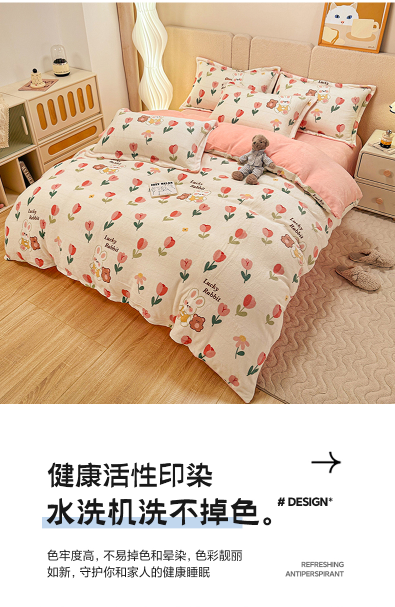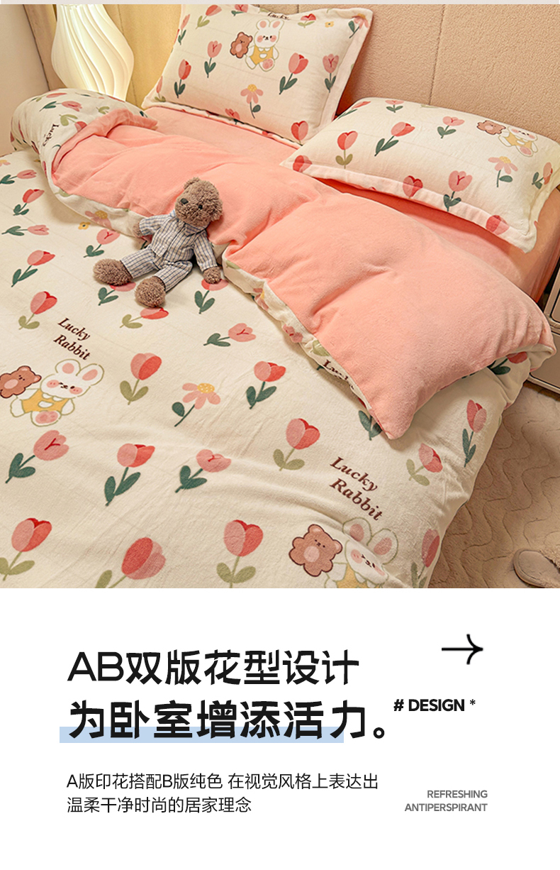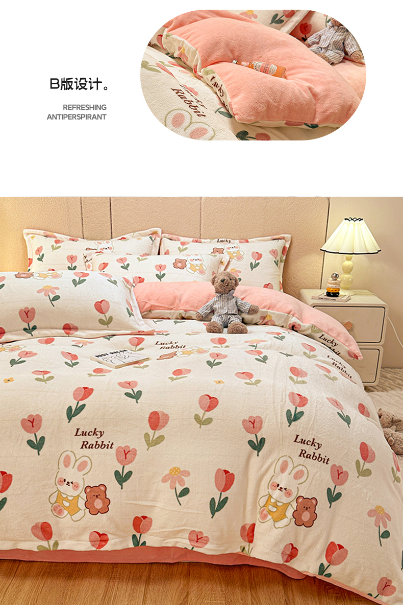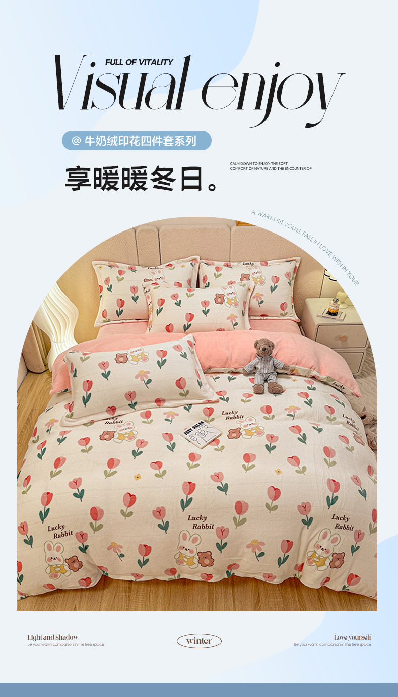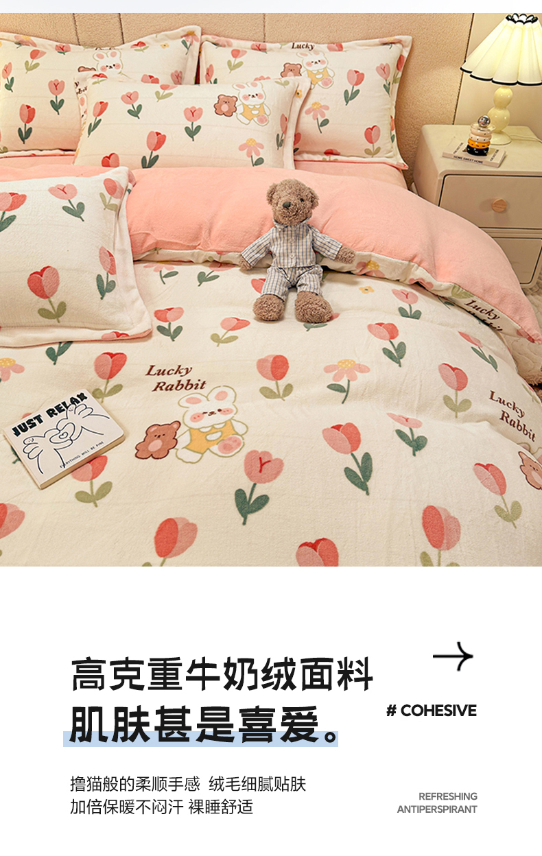 卡普二店 2024新款牛奶绒印花四件套 幸运兔