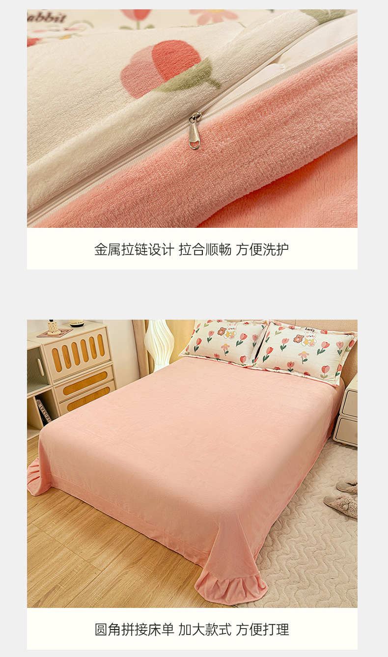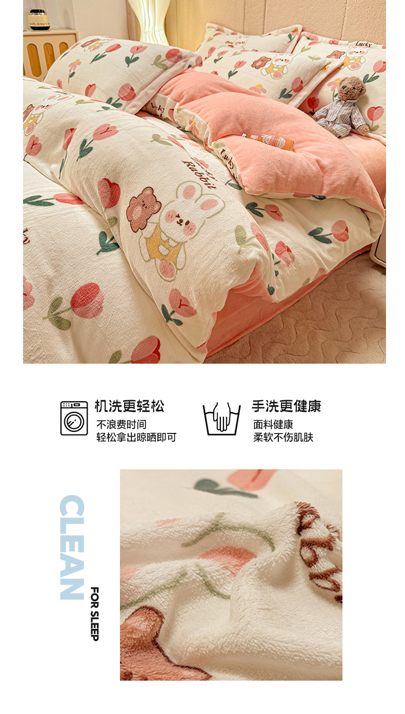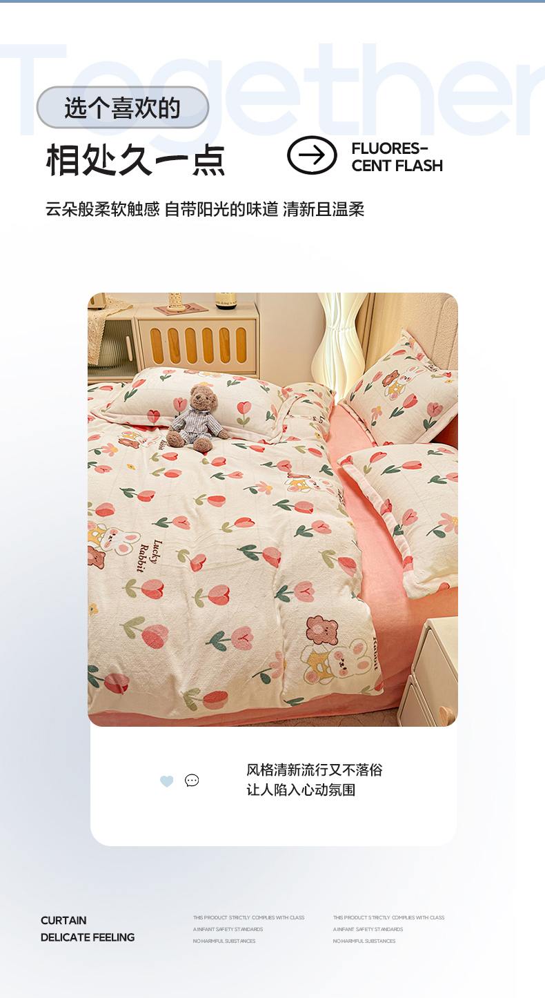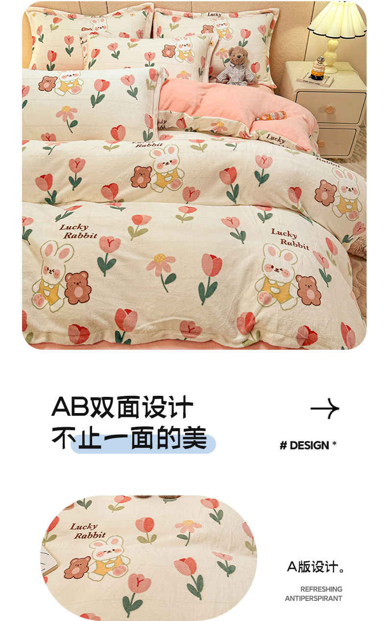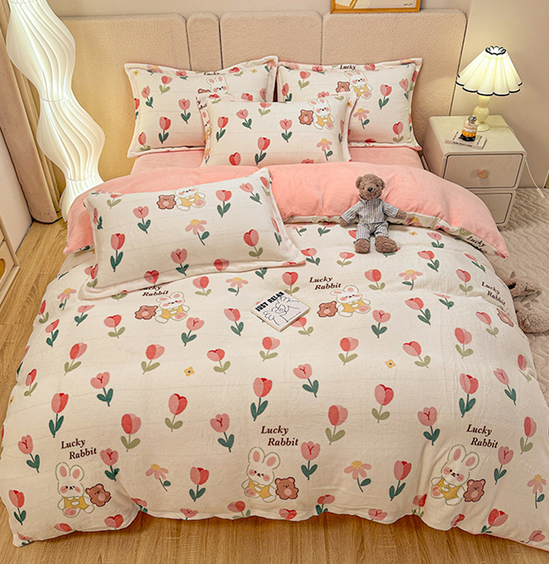 卡普二店 2024新款牛奶绒印花四件套 幸运兔