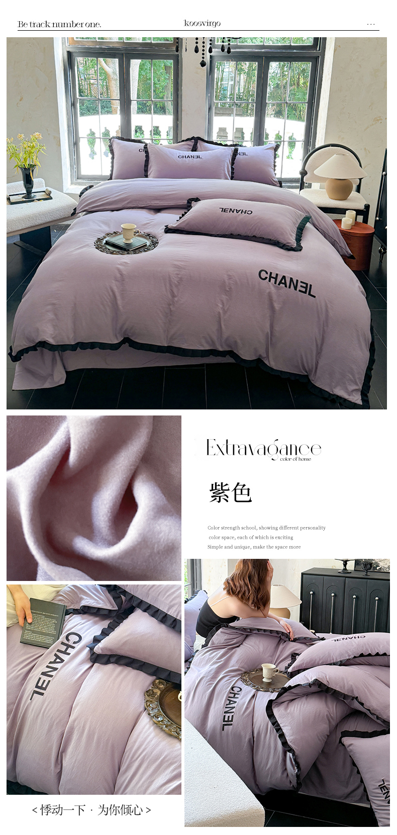一比一家纺 2024新款韩版花边刺绣款四件套 紫色