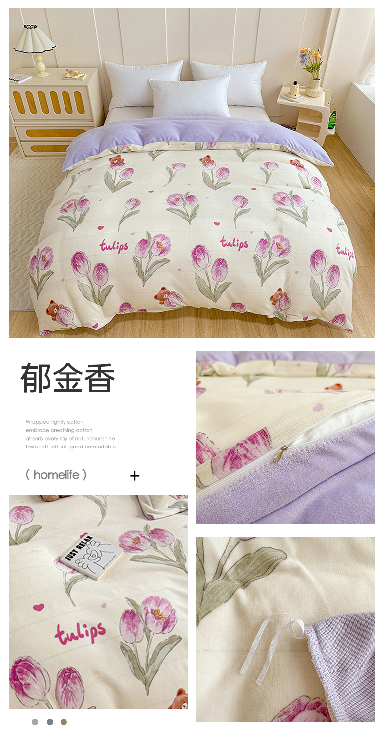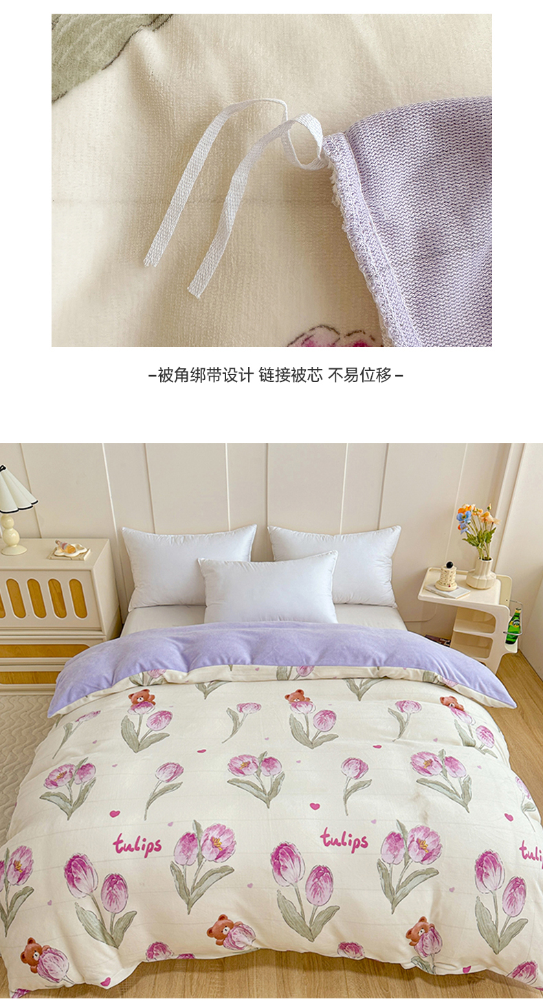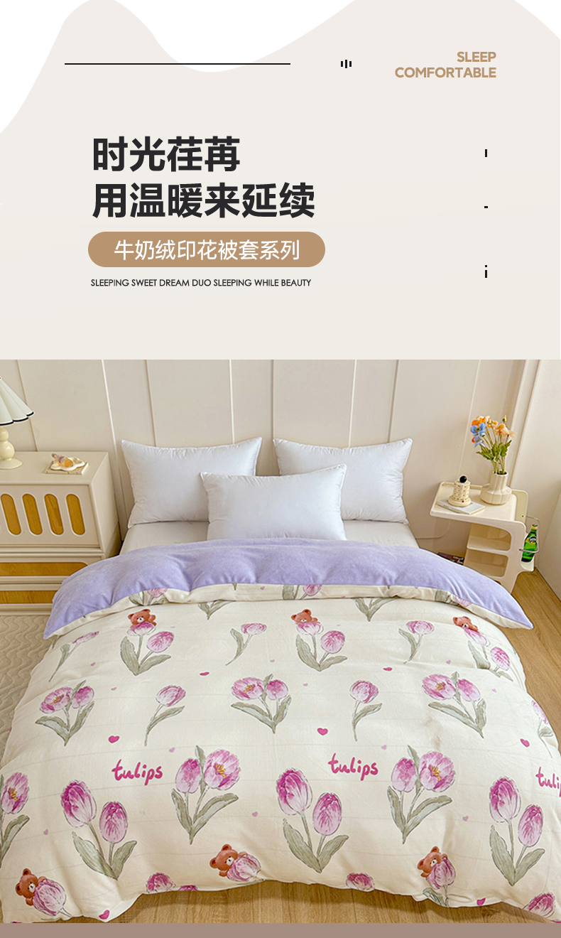 卡普二店 2024新款牛奶绒印花单被套 郁金香