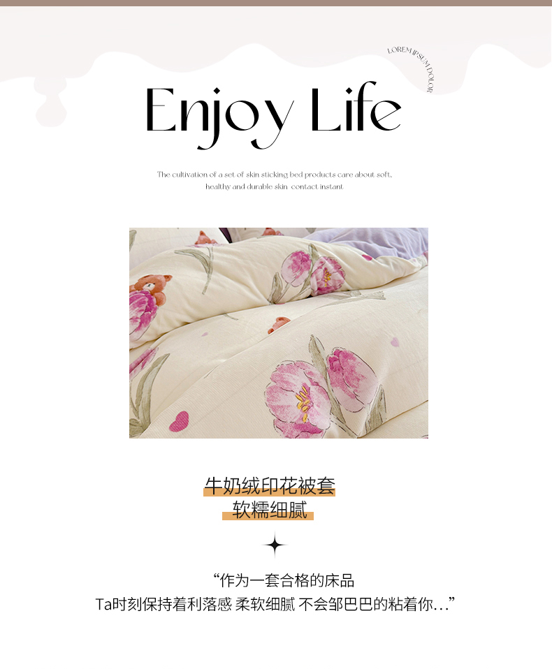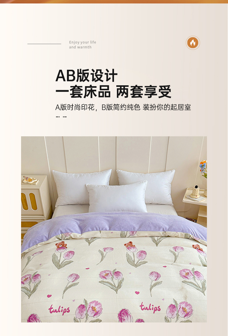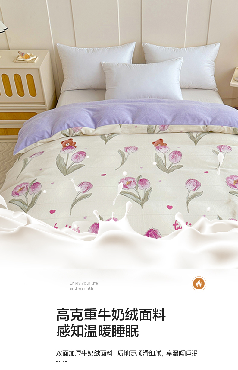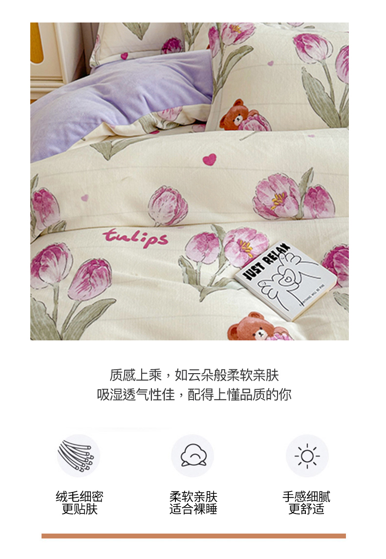 卡普二店 2024新款牛奶绒印花单被套 郁金香