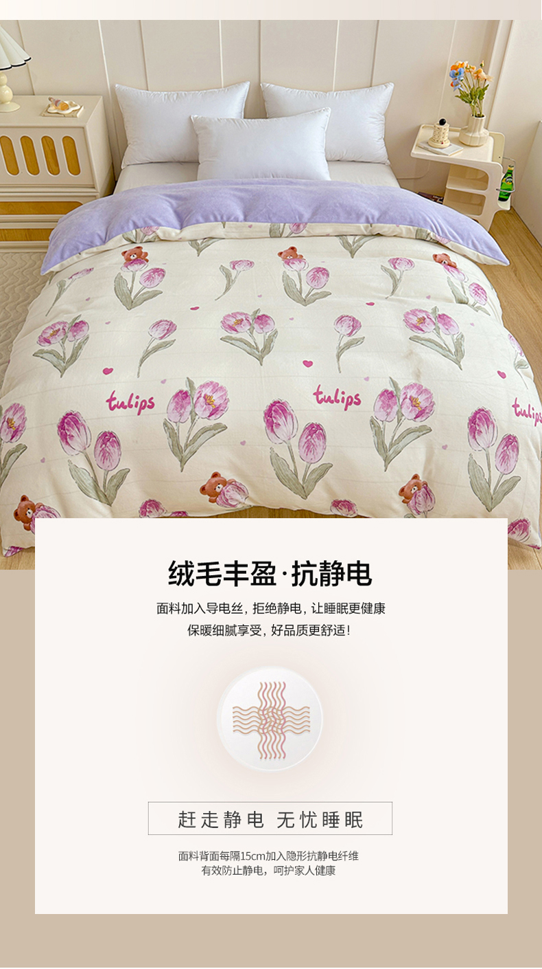 商品名称:卡普二店 2024新款牛奶绒印花单被套 郁金香