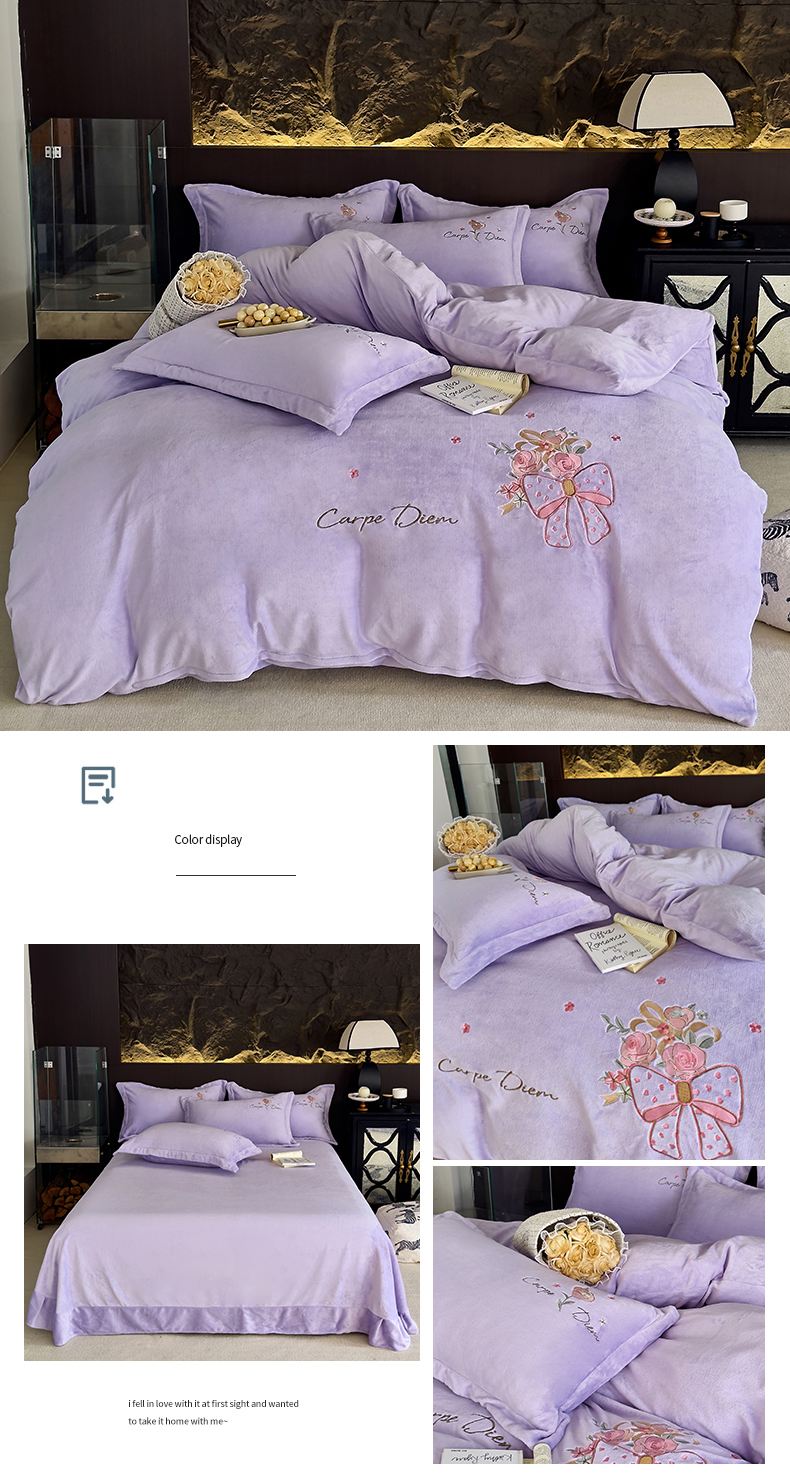 商品名称:梦莱斯 2024新款牛奶绒绣花四件套 紫色