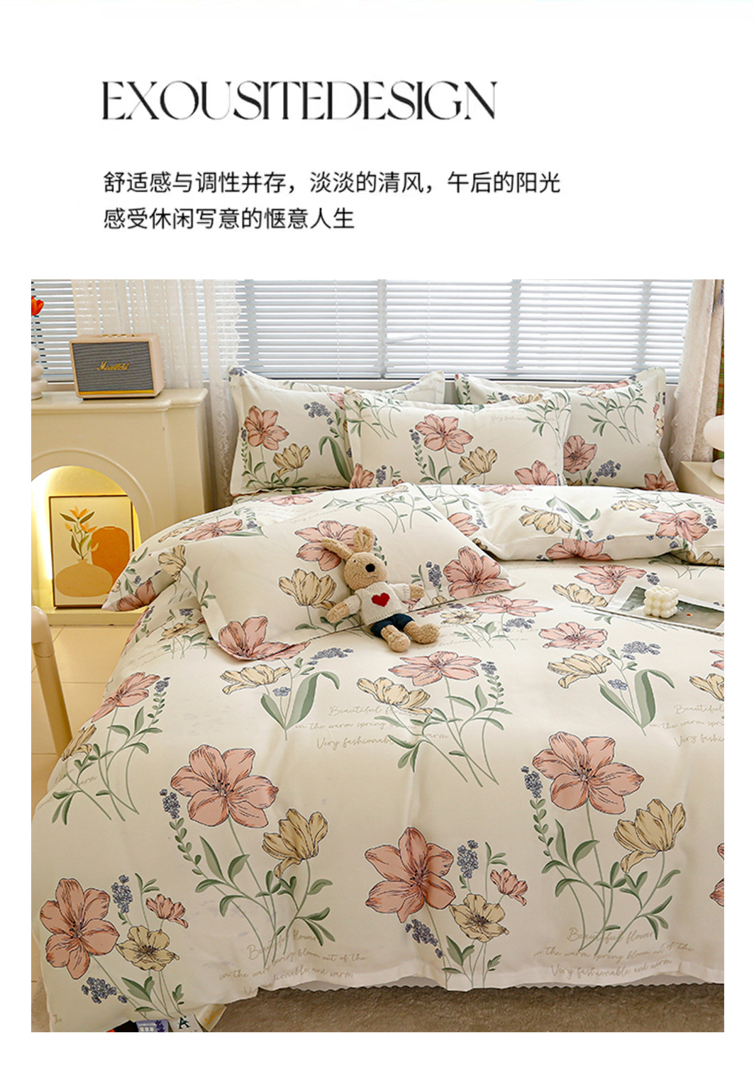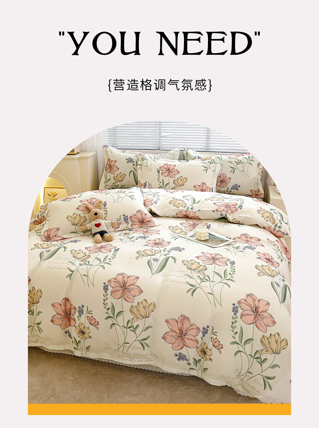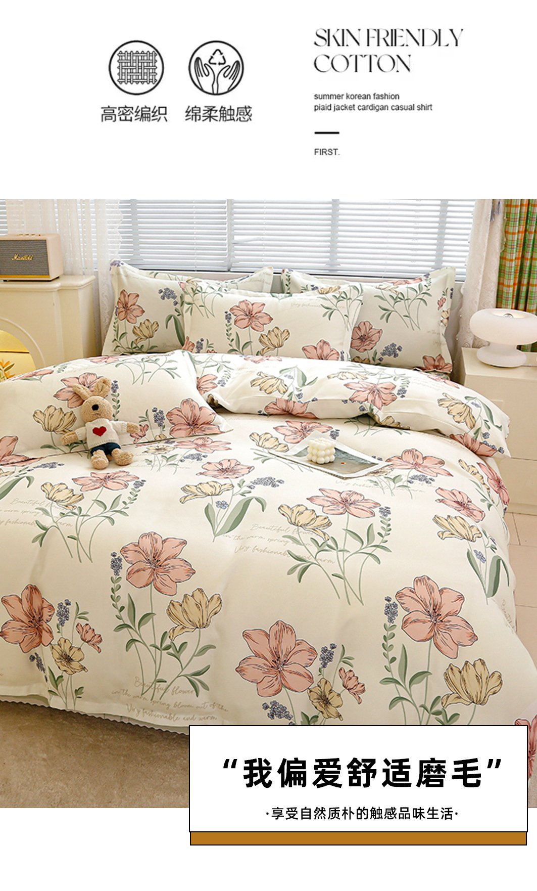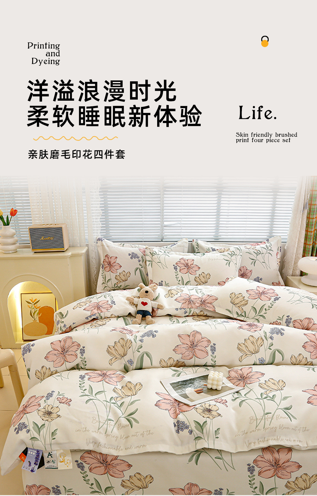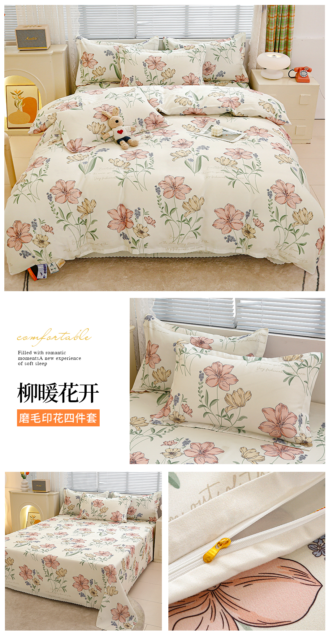 商品名称:友承 2025新款亲肤磨毛植物羊绒印花四件套 柳暖花开