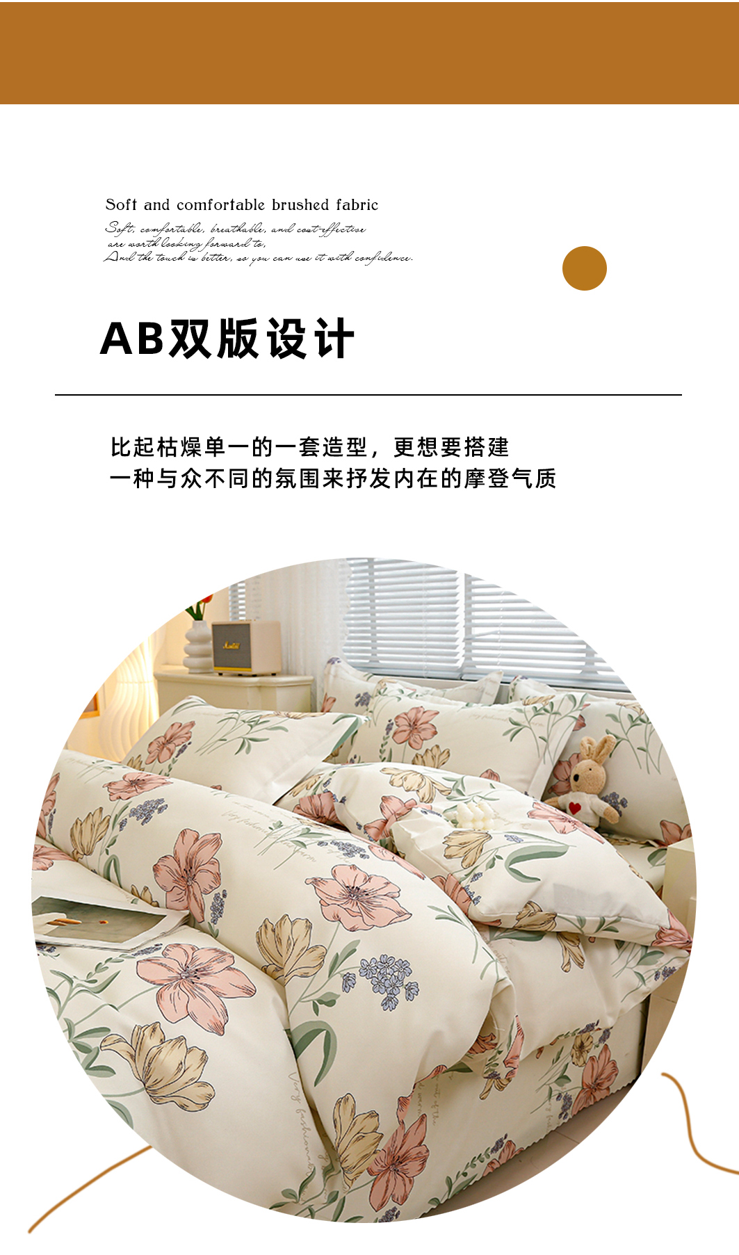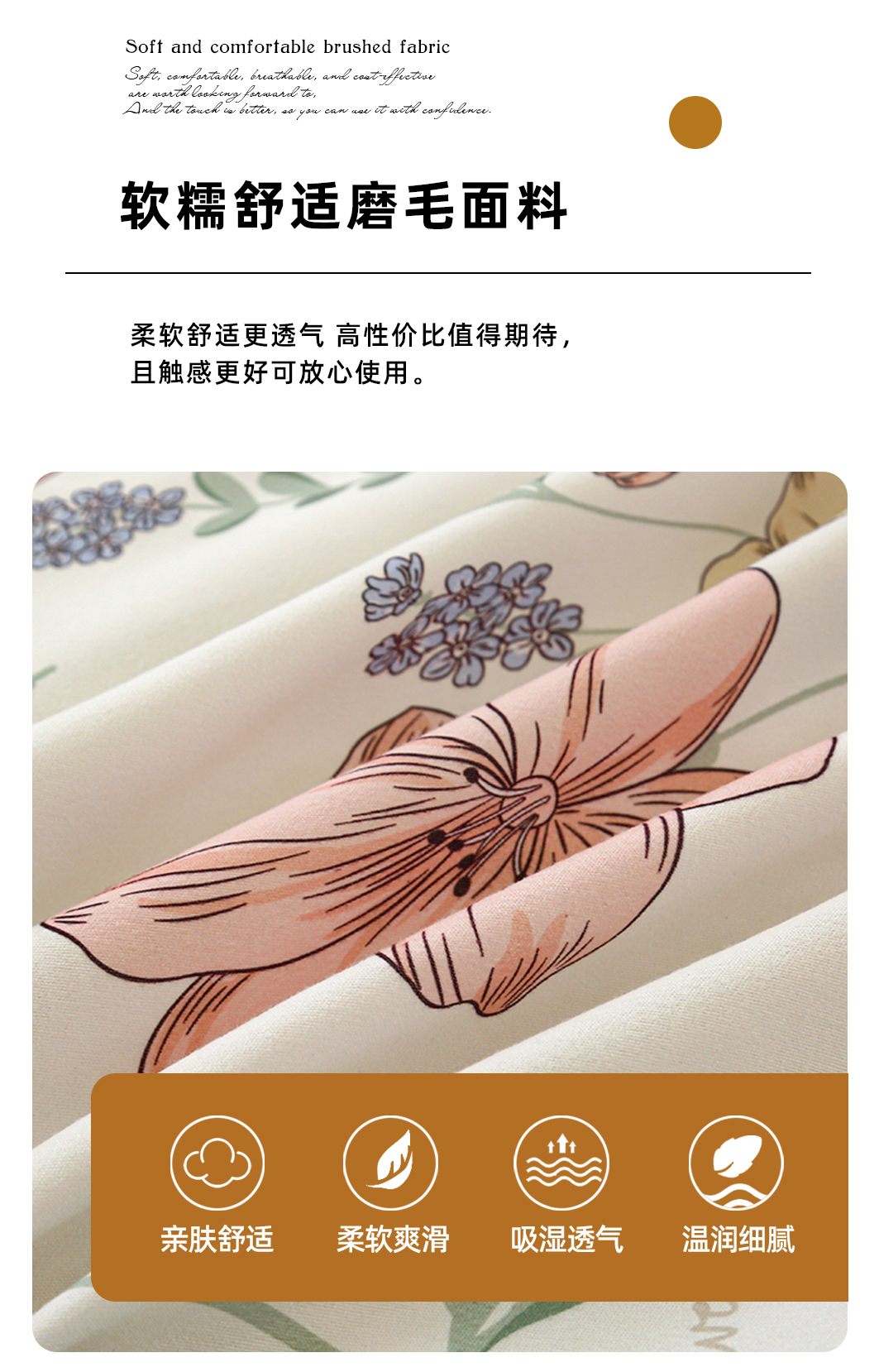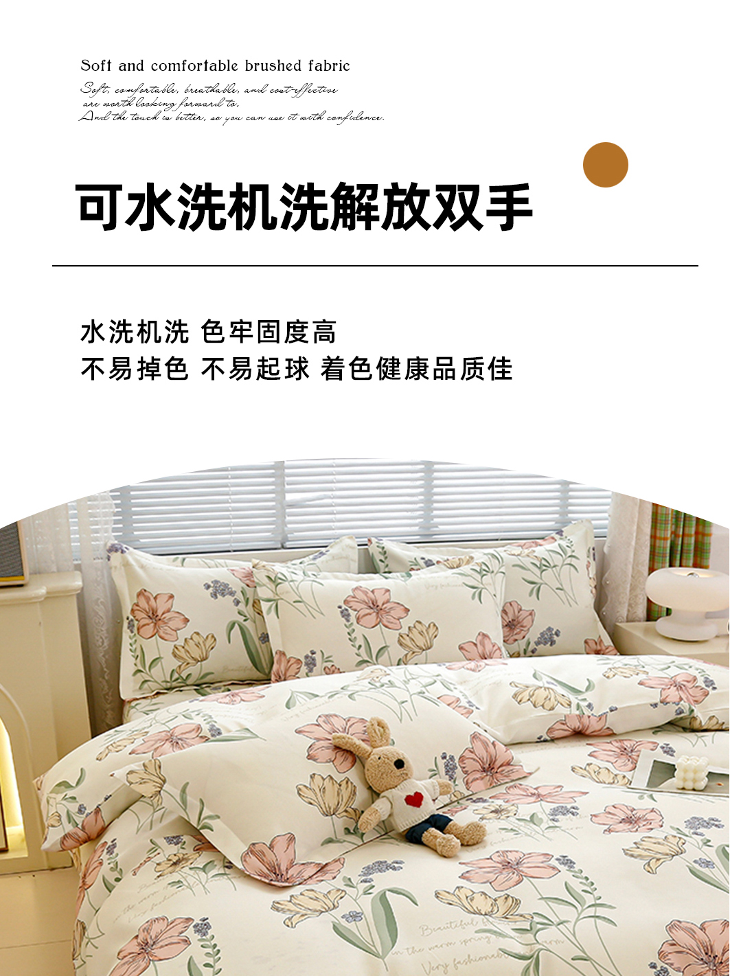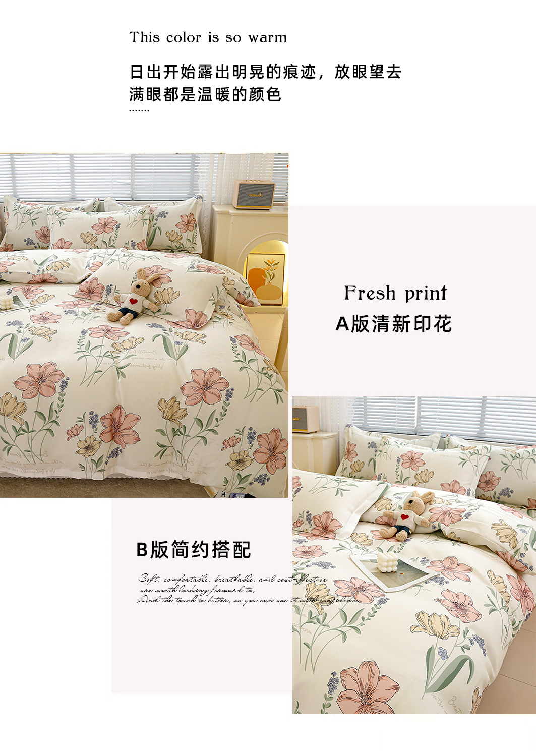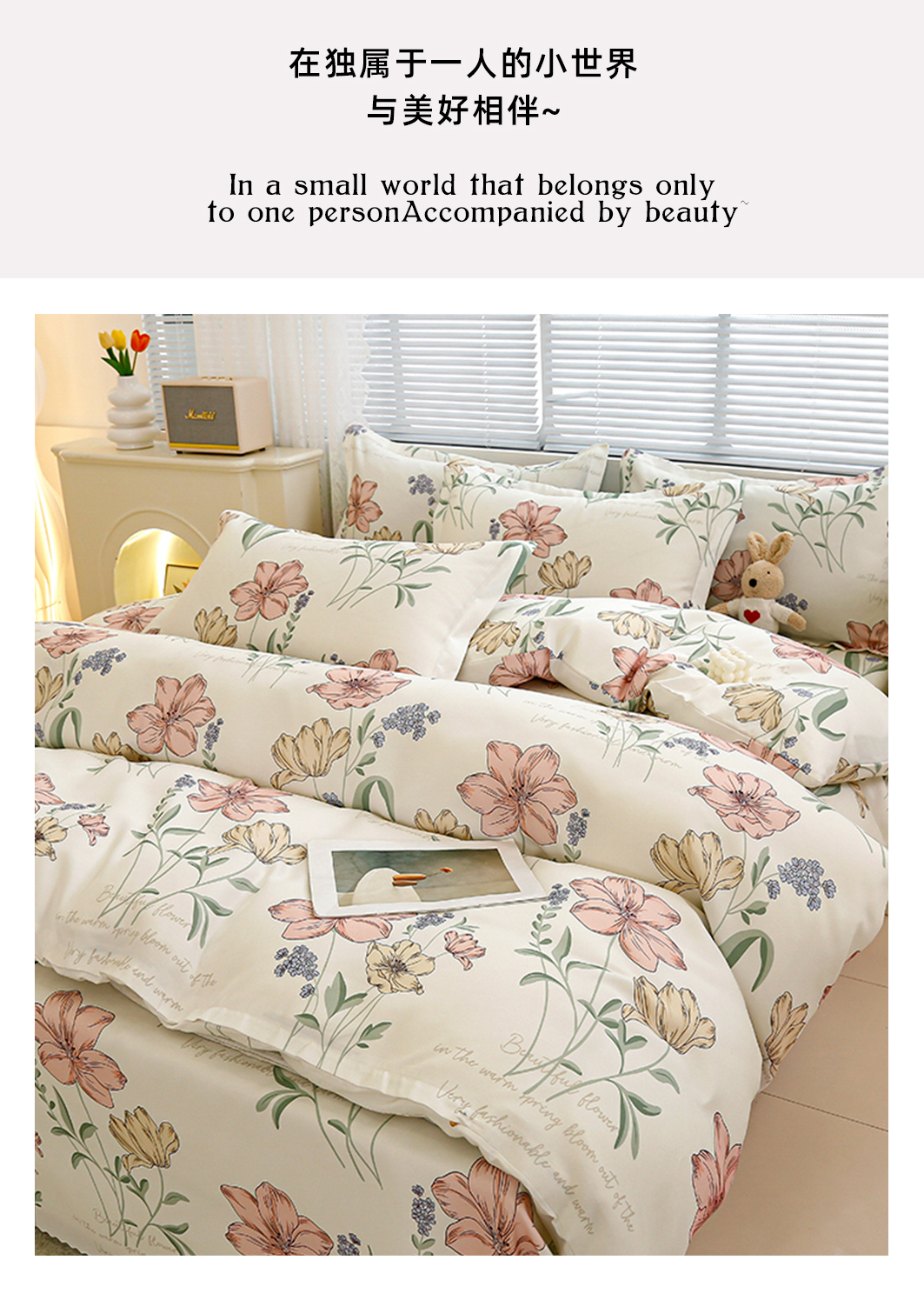 商品名称:友承 2025新款亲肤磨毛植物羊绒印花四件套 柳暖花开