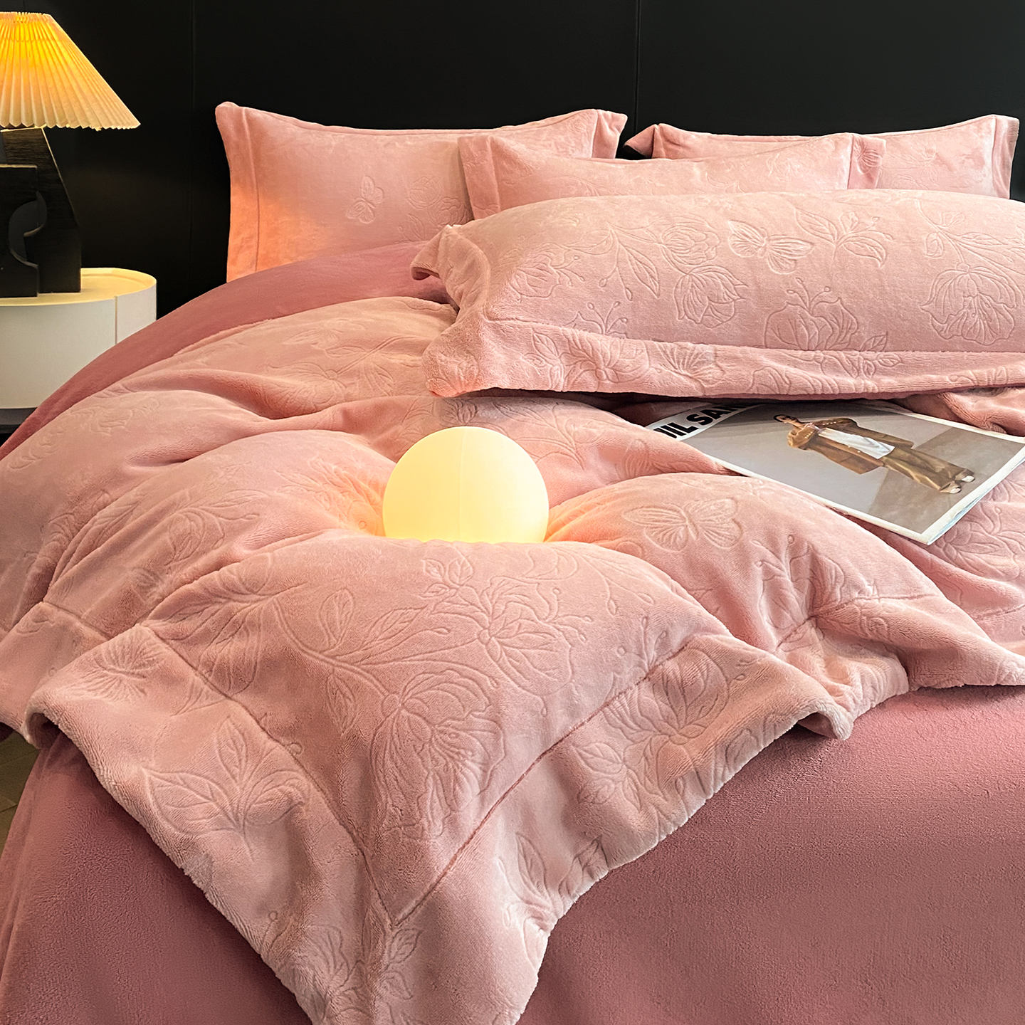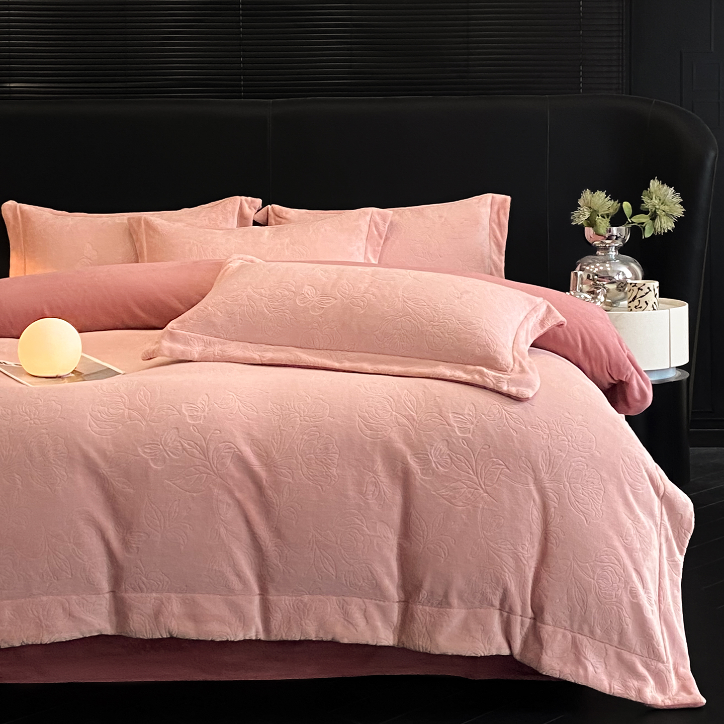 商品名称:新方向 2025新款全消光A类烂花牛奶绒四件套-蝴蝶戏花 蝴蝶戏花-浅豆沙