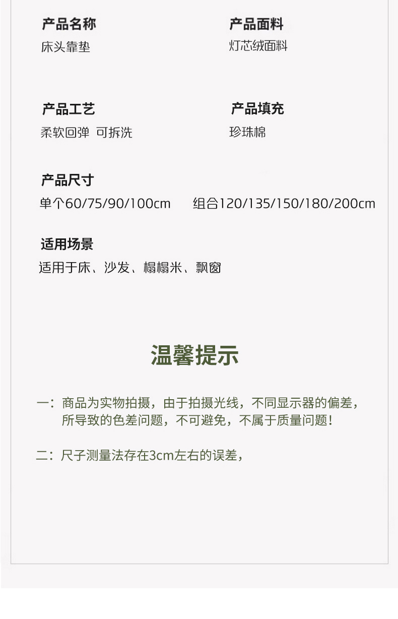 商品名称:(总)美达人 2024新款灯芯绒床头靠垫