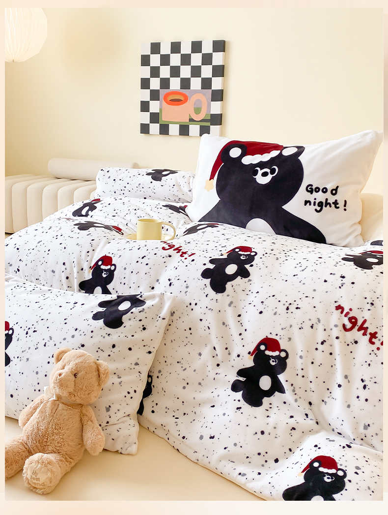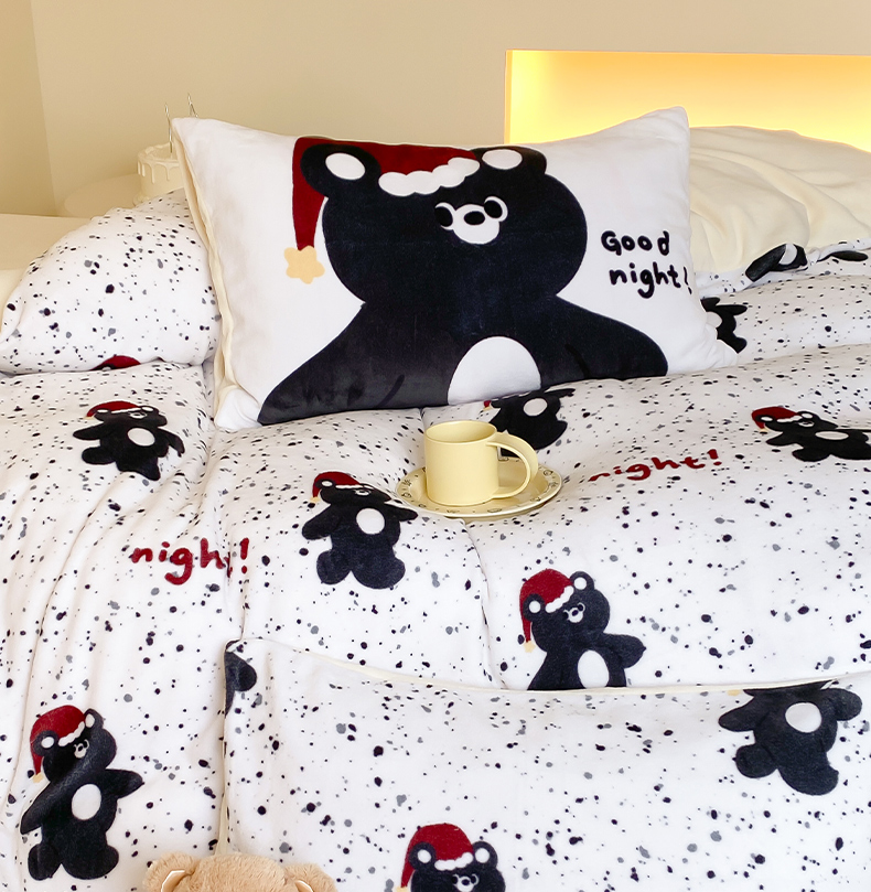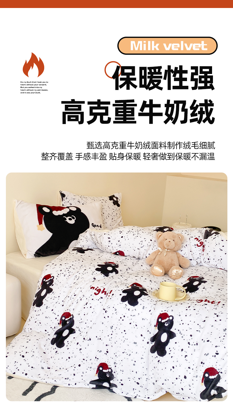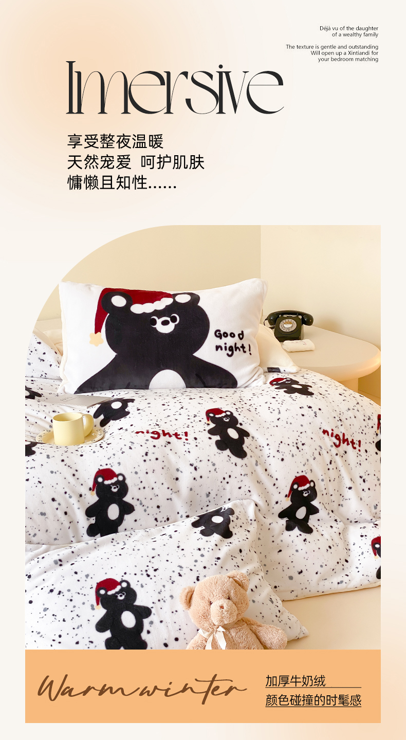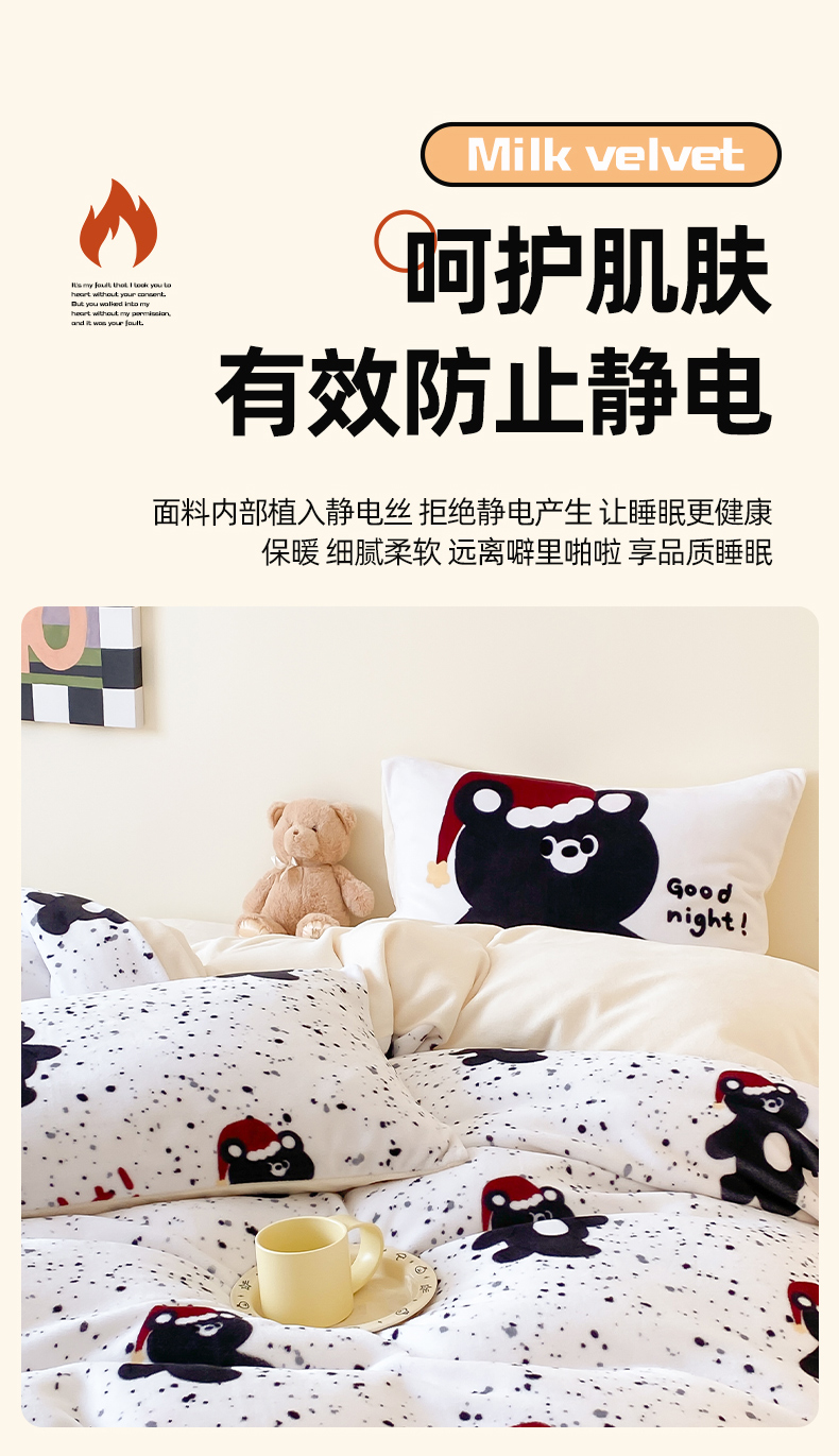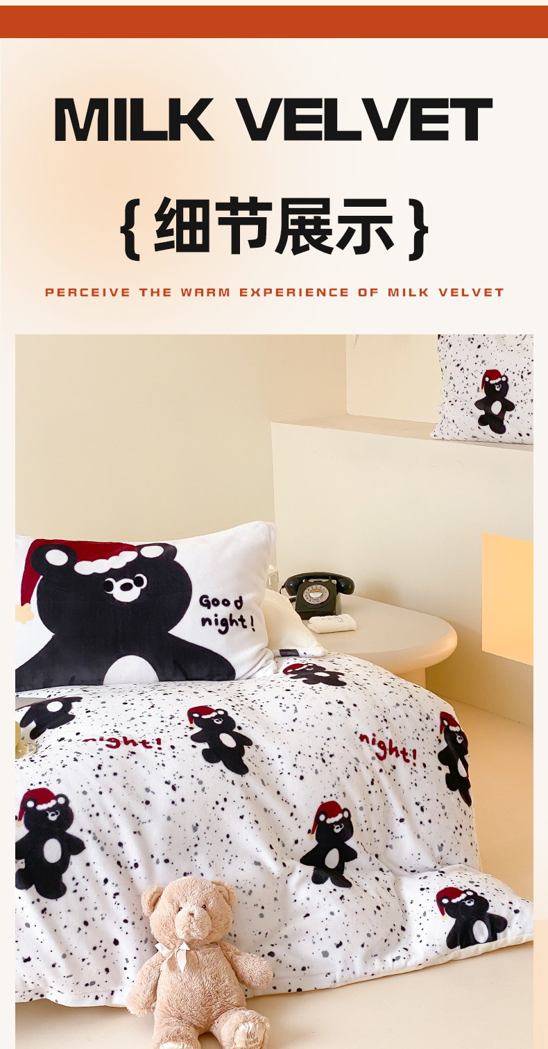 (总)时光里 2024新款牛奶绒四件套--晚安熊