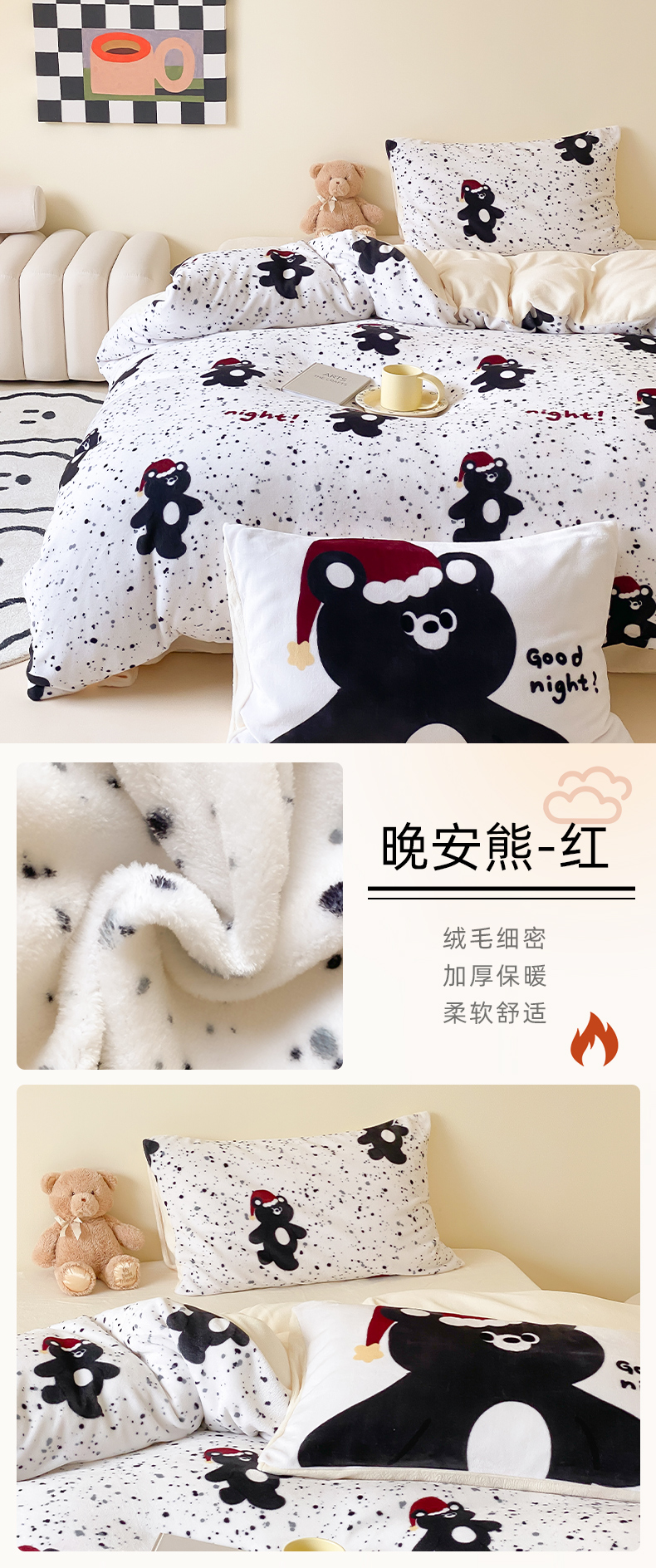 商品名称:(总)时光里 2024新款牛奶绒四件套--晚安熊