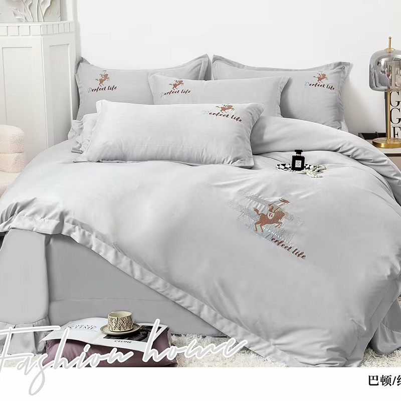 优纤家纺 2024新款亲肤舒适绣花四件套-巴顿 绅士灰