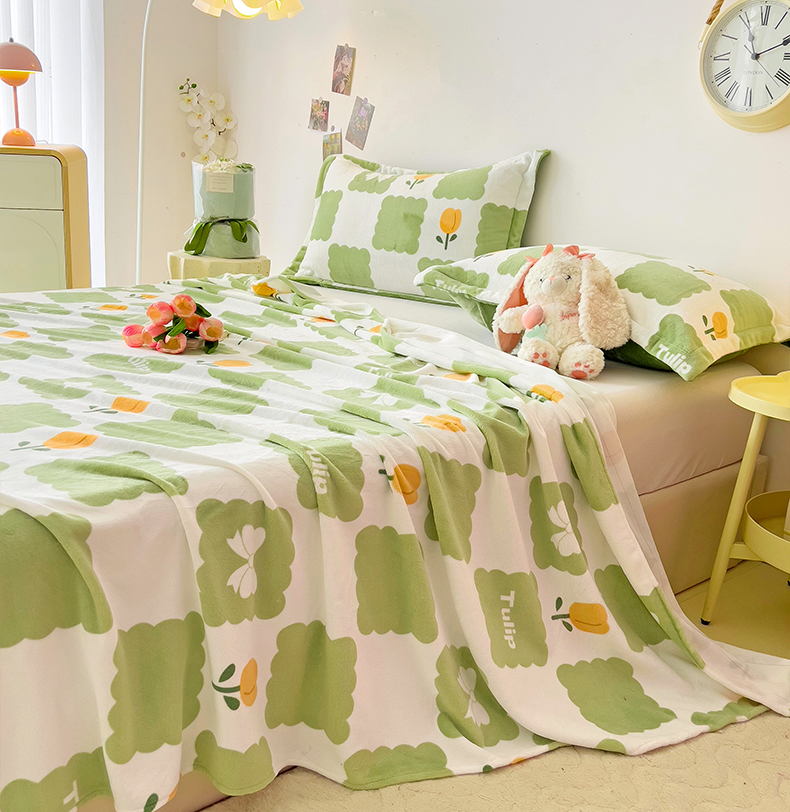 大柏树 2025新款A类高克重亲肤舒适牛奶绒印花四件套-单床单可定制 花町-绿