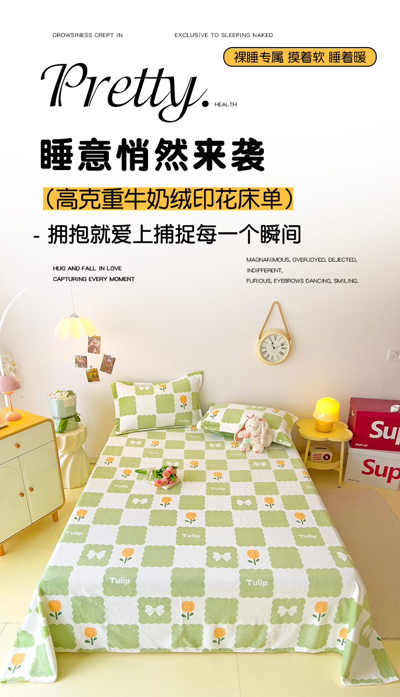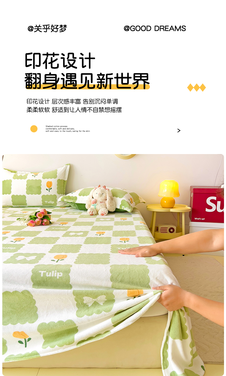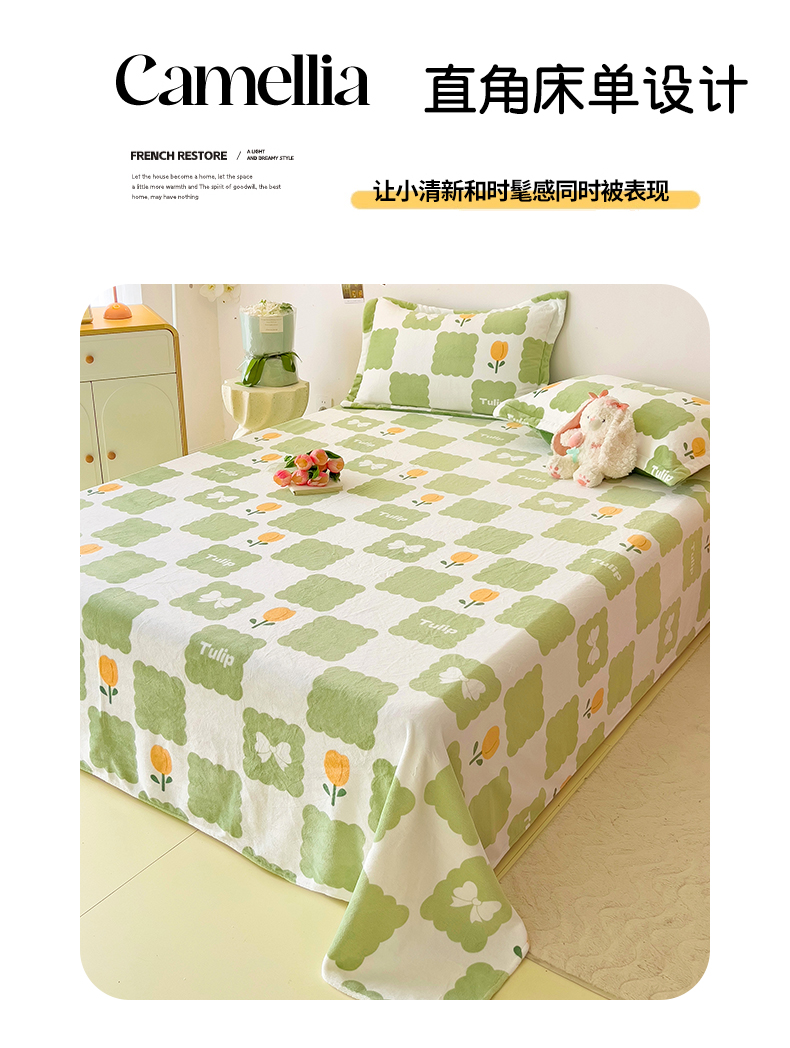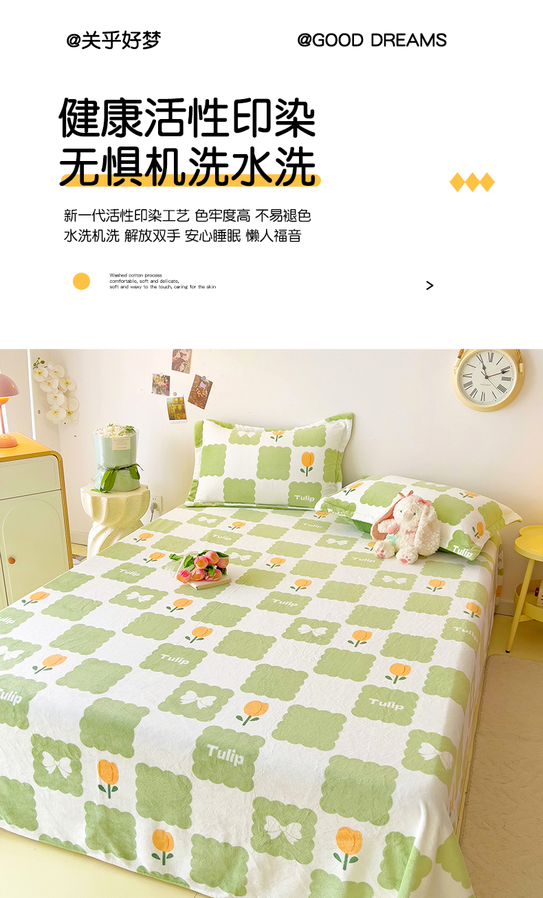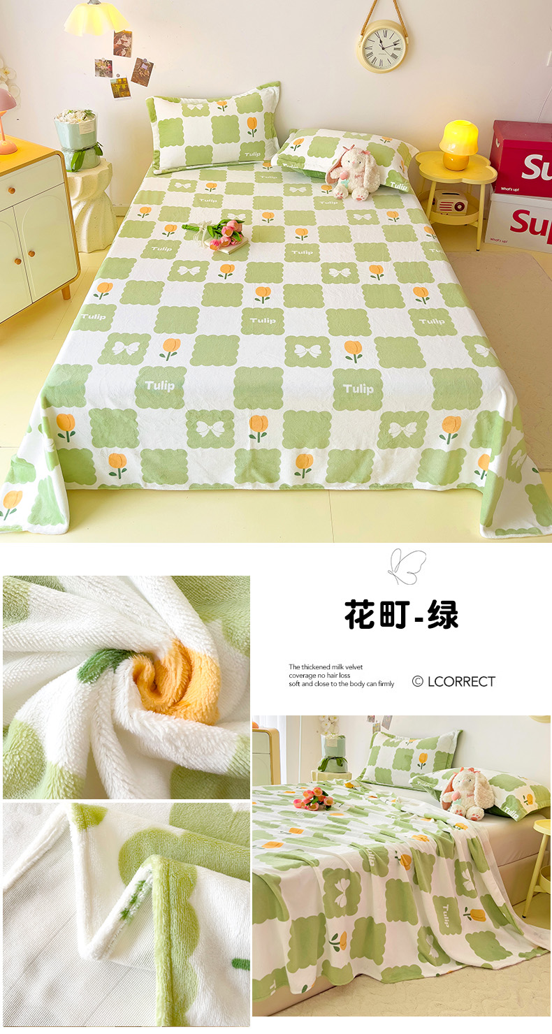 商品名称:大柏树 2025新款A类高克重亲肤舒适牛奶绒印花四件套-单床单可定制 花町-绿