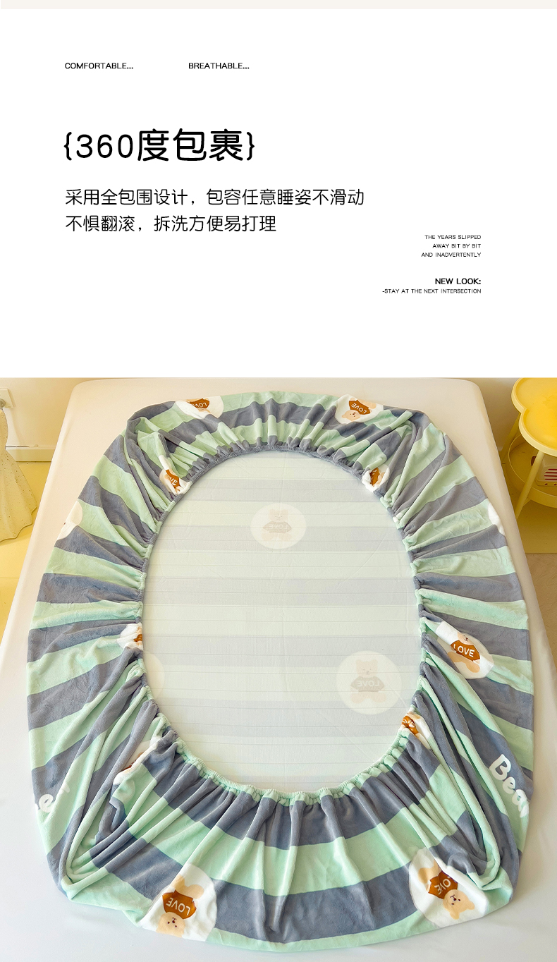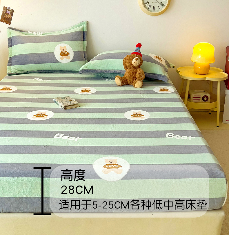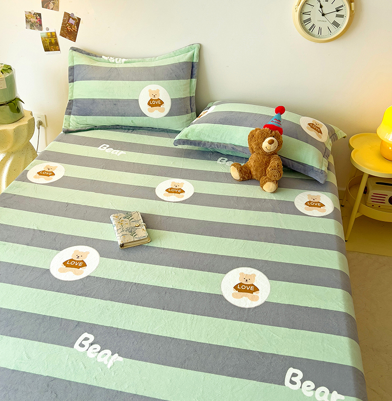大柏树 2025新款A类高克重亲肤舒适牛奶绒印花四件套-单床笠可定制 布琪小熊-绿