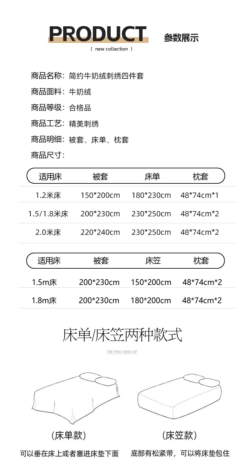 商品名称:佰亿莱 2024新款简约牛奶绒刺绣四件套 南瓜猫