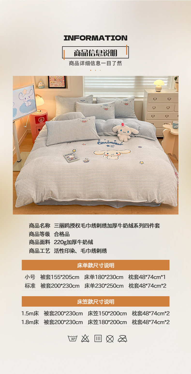 当前位置: 91家纺网 > 商品网购 > 床品套件 > 四件套 > 牛奶绒四件套 > 桃子家居 2024新款A类正版三丽鸥授权毛巾绣刺绣工艺加厚牛奶绒系列四件套 绒毛巾绣-蓝格大耳狗