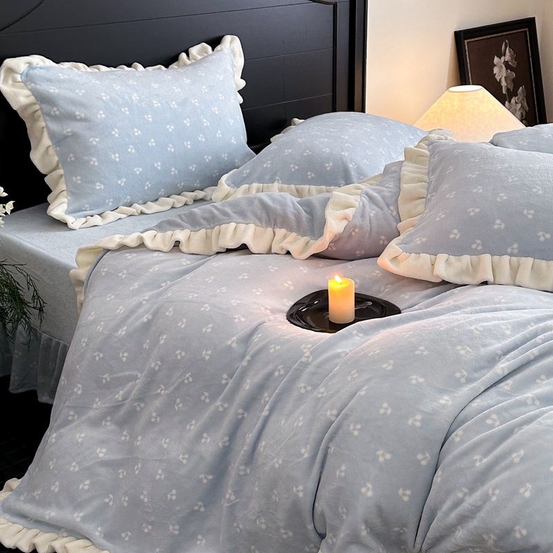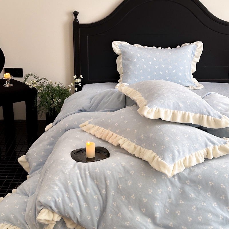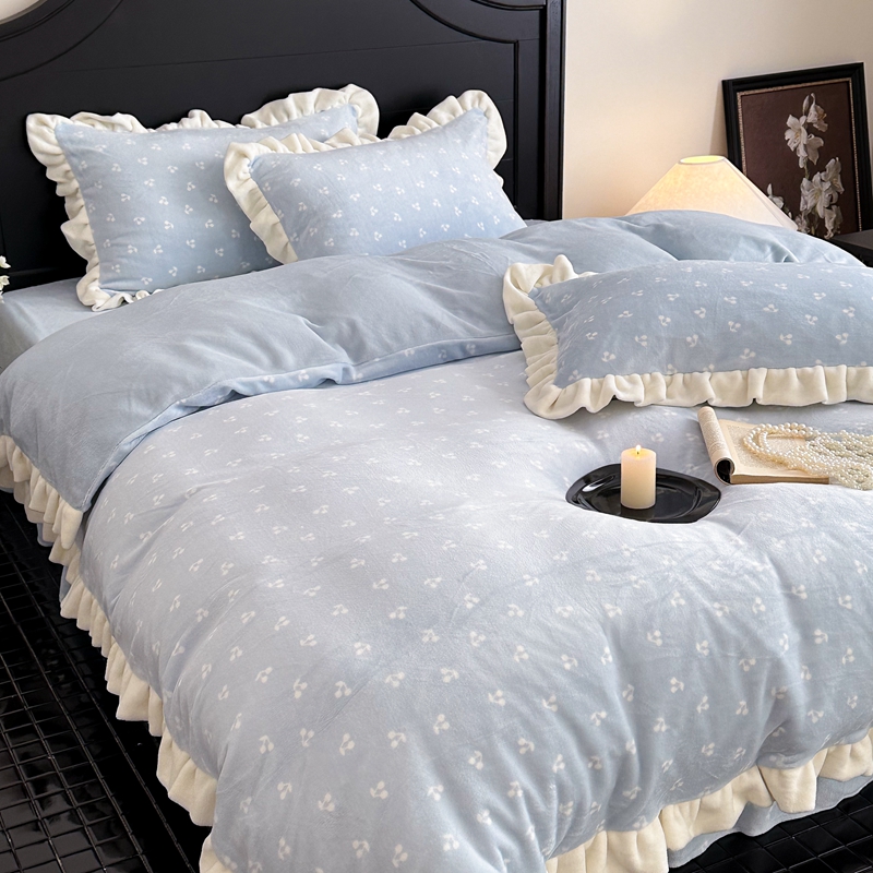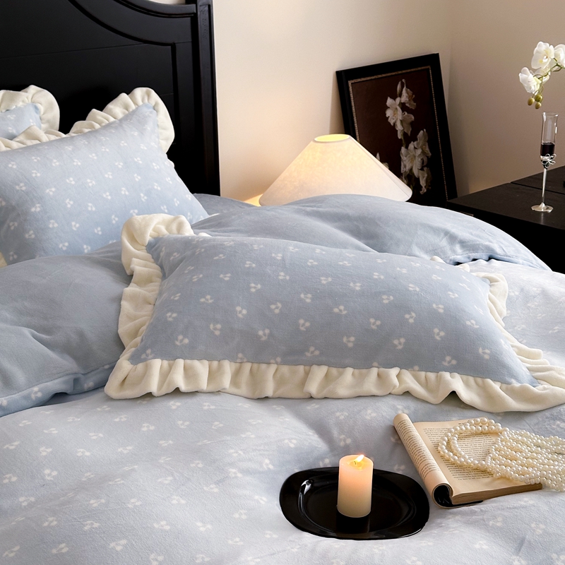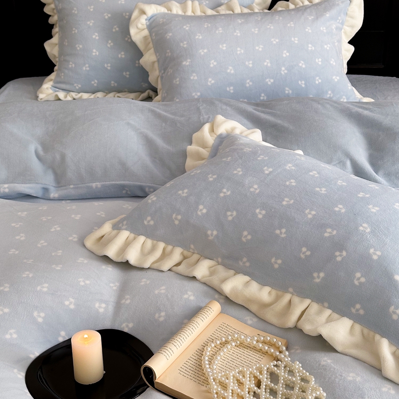 当前位置: 91家纺网 > 商品网购 > 床品套件 > 四件套 > 牛奶绒四件套 > 潘朵拉家纺 2024爆款绒法式双层牛奶绒花边四件套 悠米