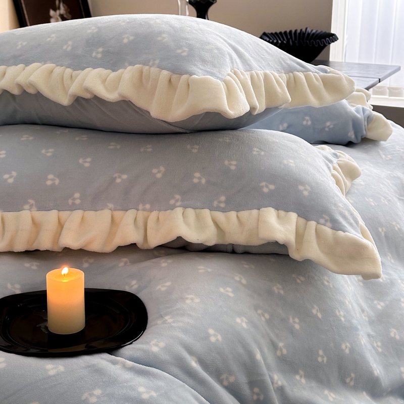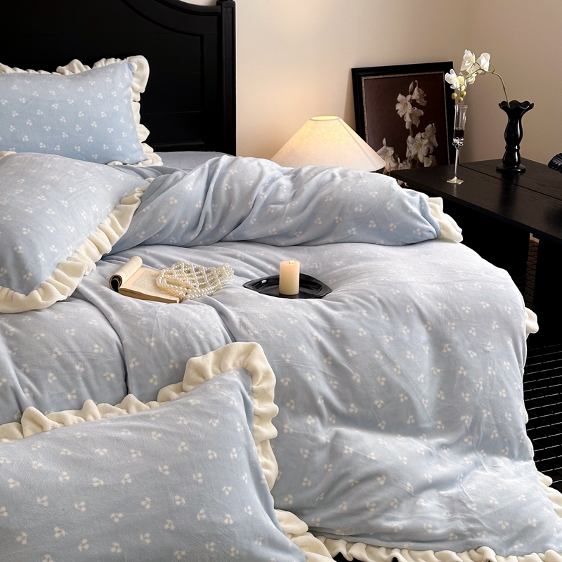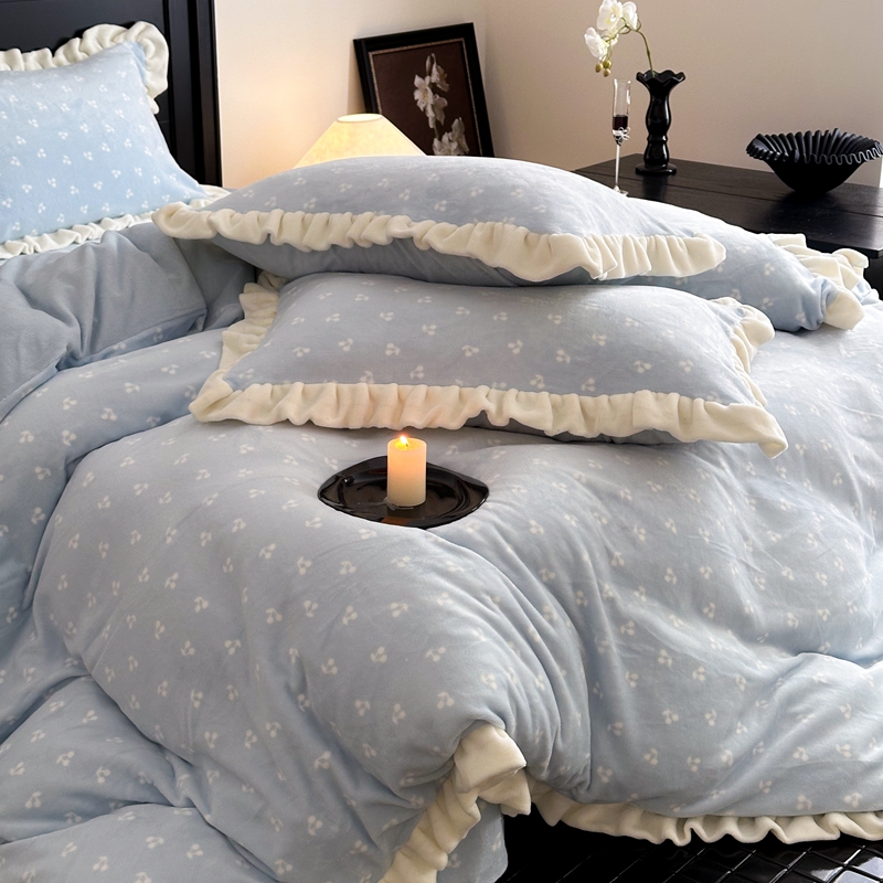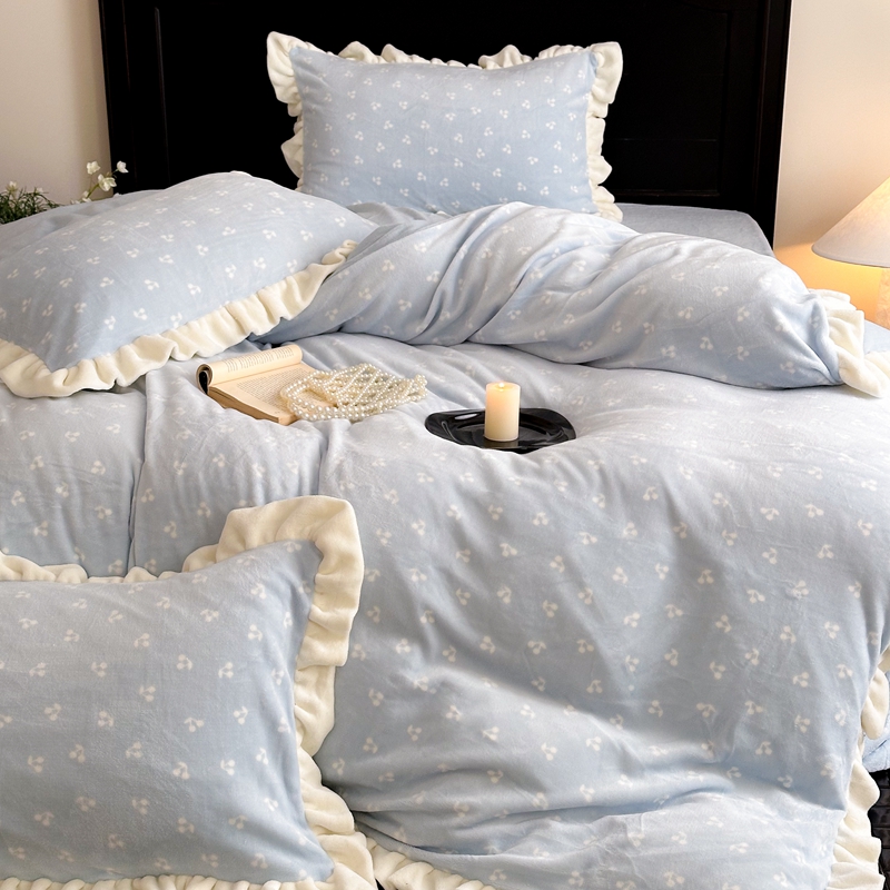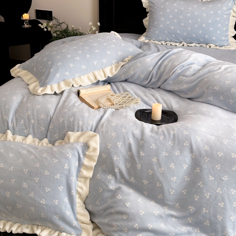 当前位置: 91家纺网 > 商品网购 > 床品套件 > 四件套 > 牛奶绒四件套 > 潘朵拉家纺 2024爆款绒法式双层牛奶绒花边四件套 悠米