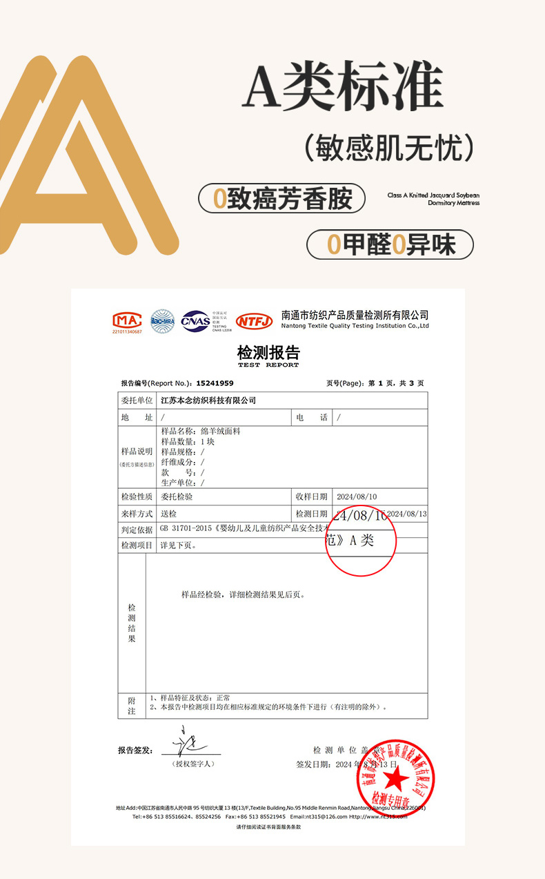 4、通州区市场监管局川姜分局友情提醒:近期针对抗静电,无静电,抗菌防螨,及有关舒适度,百分比的举报高发。为不影响商品正常销售,请各商家高度重视,自检自查及时整改,谢谢配合!