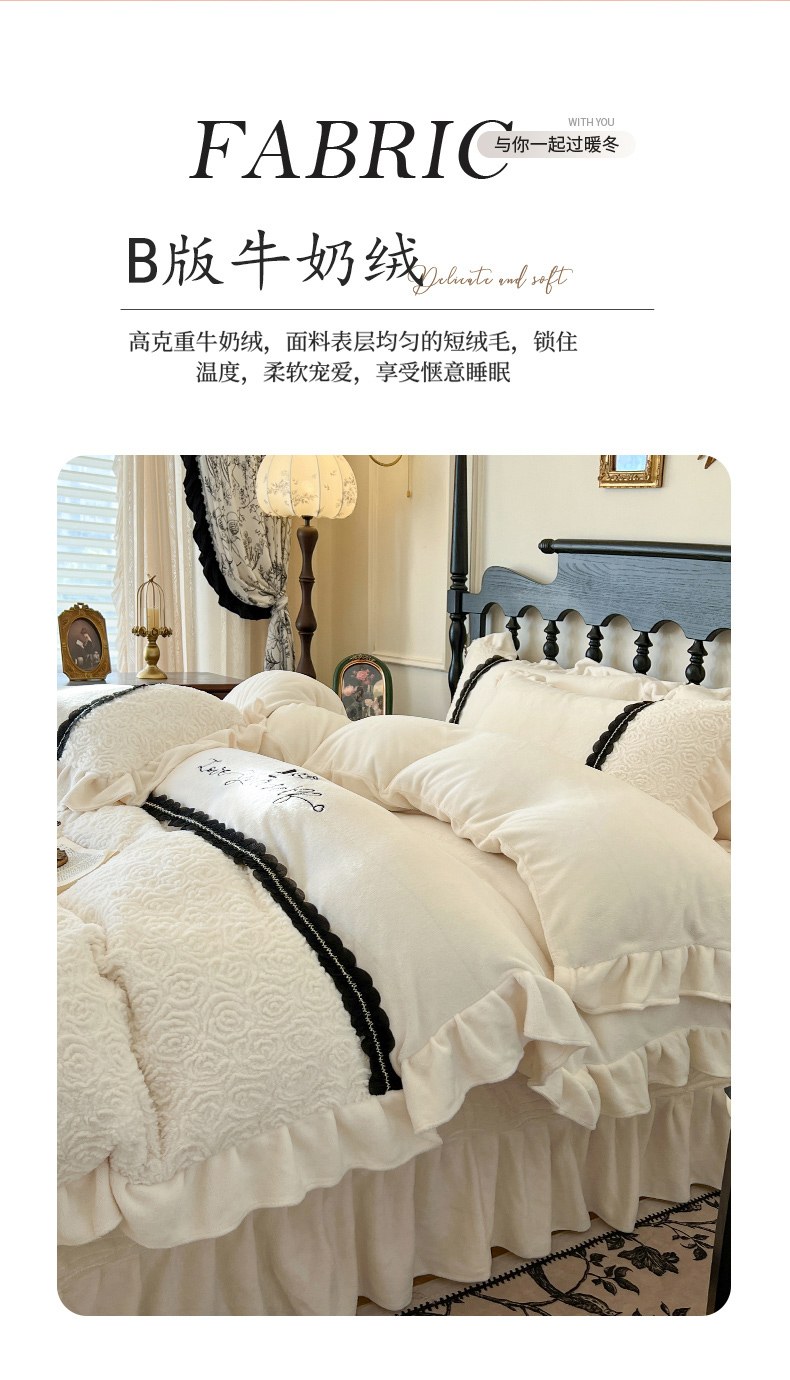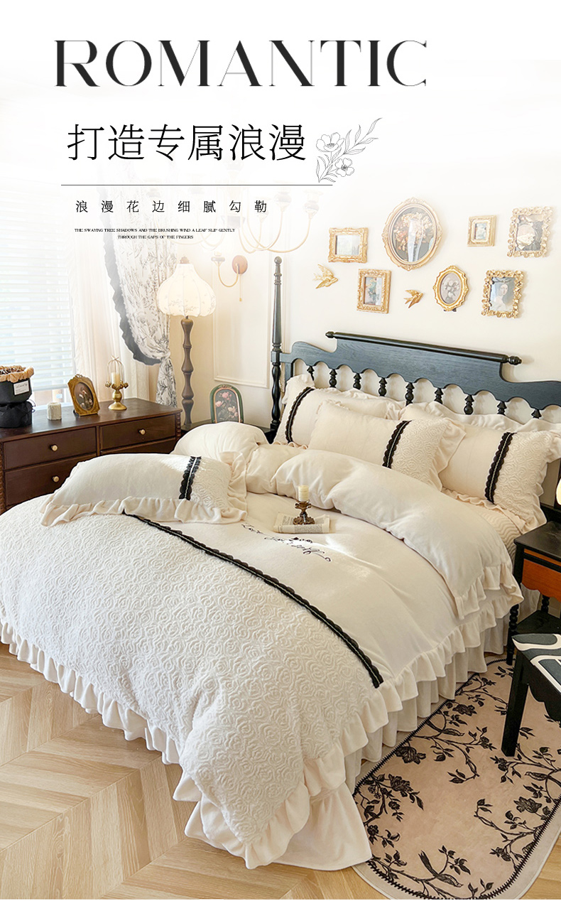 (总)乐朵家居 2025新款 克拉玫瑰 牛奶绒 床单款夹棉床盖四件套(控价床单268床盖298),浅杏色,丁香紫,奶白色,湖水蓝,浅豆沙,浅粉玉