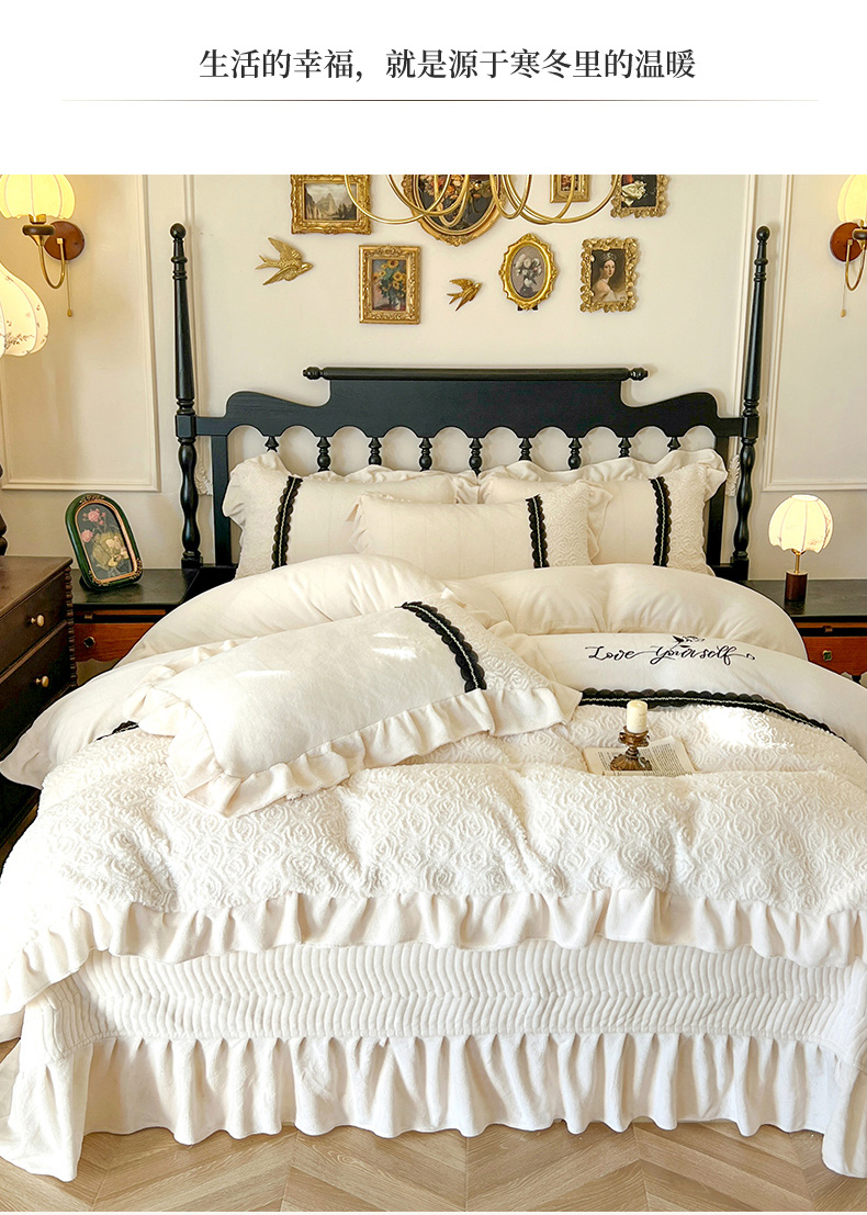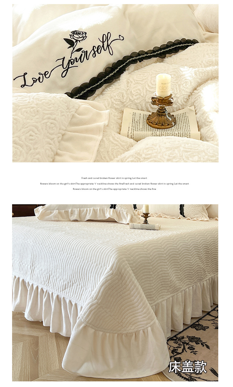 商品名称:乐朵家居 2024新款 欧若拉 牛奶绒床单款床盖款四件套(控价单278夹棉318)-白