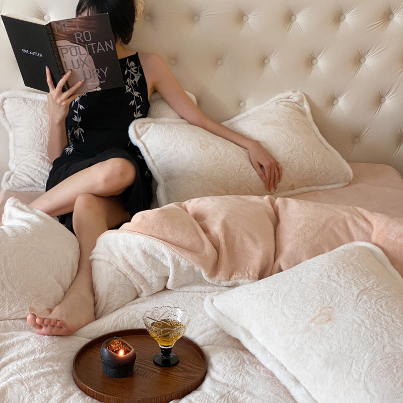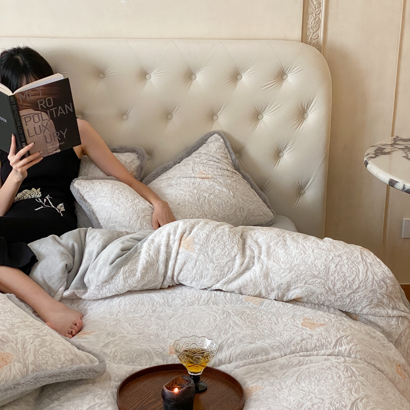 (总)初拾 2024新款250g牛奶绒雕花法式四件套—艾米丽(场景二)