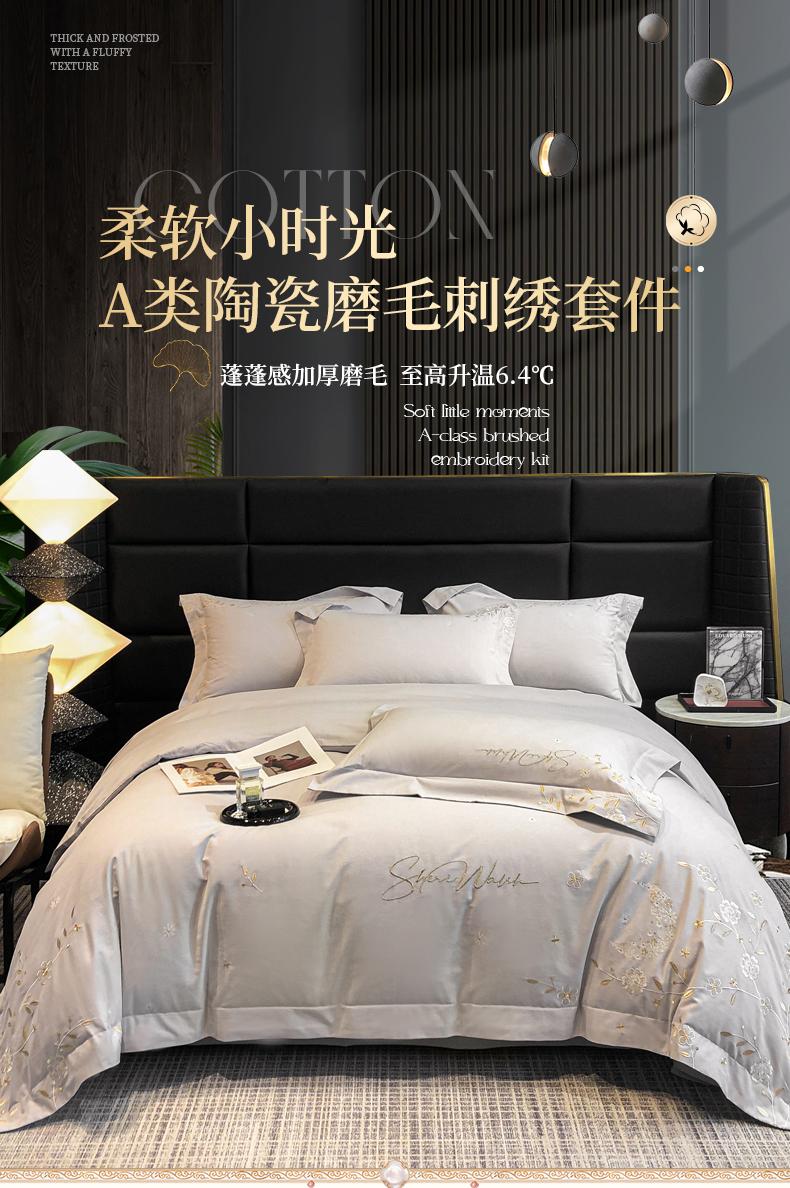 商品名称:家居1号家纺 2024新款全棉陶瓷磨毛四件套-黛安娜 黛安娜-淡雅灰