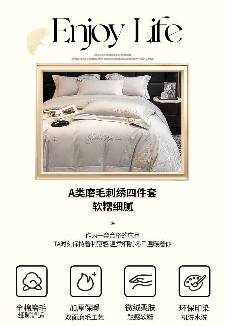 (总)家居1号家纺 2025新款全消光牛奶绒刺绣圣玛丽四件套,圣玛丽-粉豆沙,圣玛丽-果绿,圣玛丽-晴蓝,圣玛丽-绅士灰,圣玛丽-香槟金