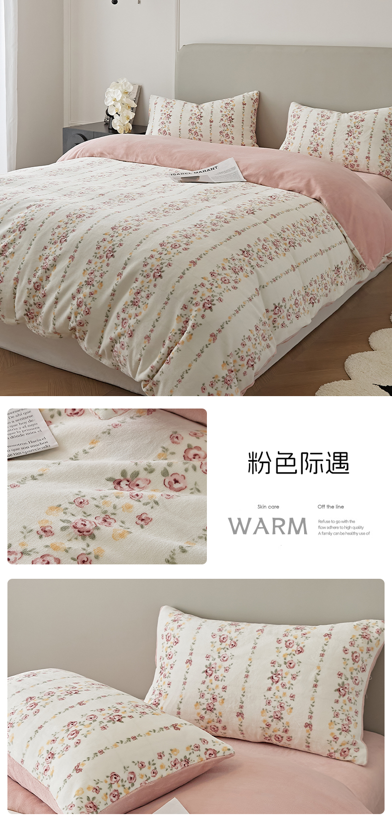当前位置: 91家纺网 > 商品网购 > 床品套件 > 四件套 > 牛奶绒四件套 > 时光里 2024新款230克牛奶绒印花四件套 粉色际遇