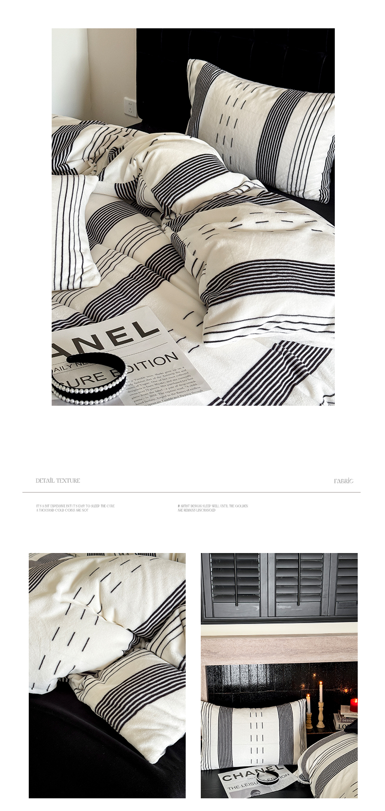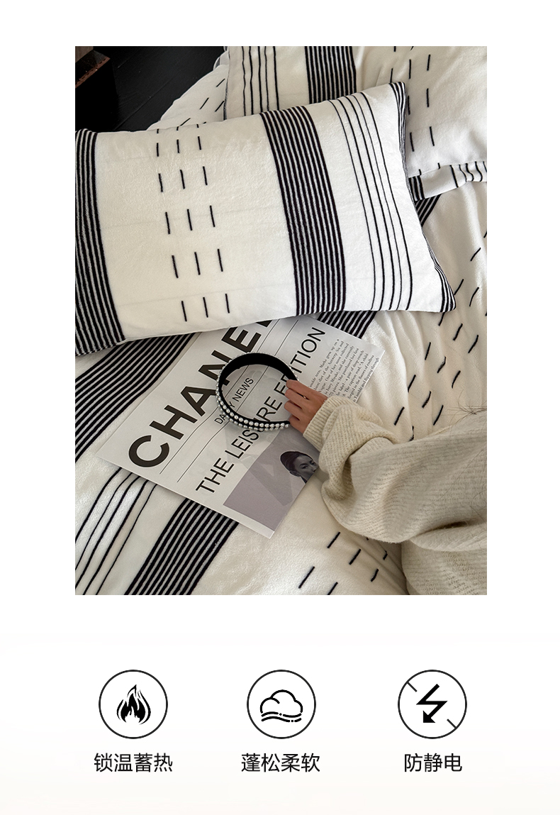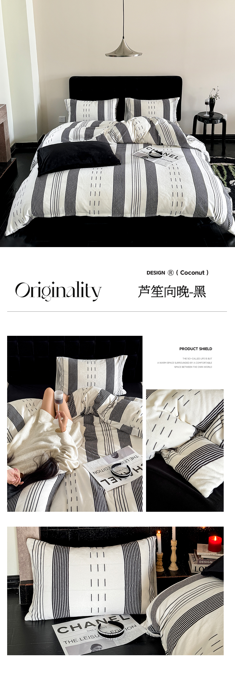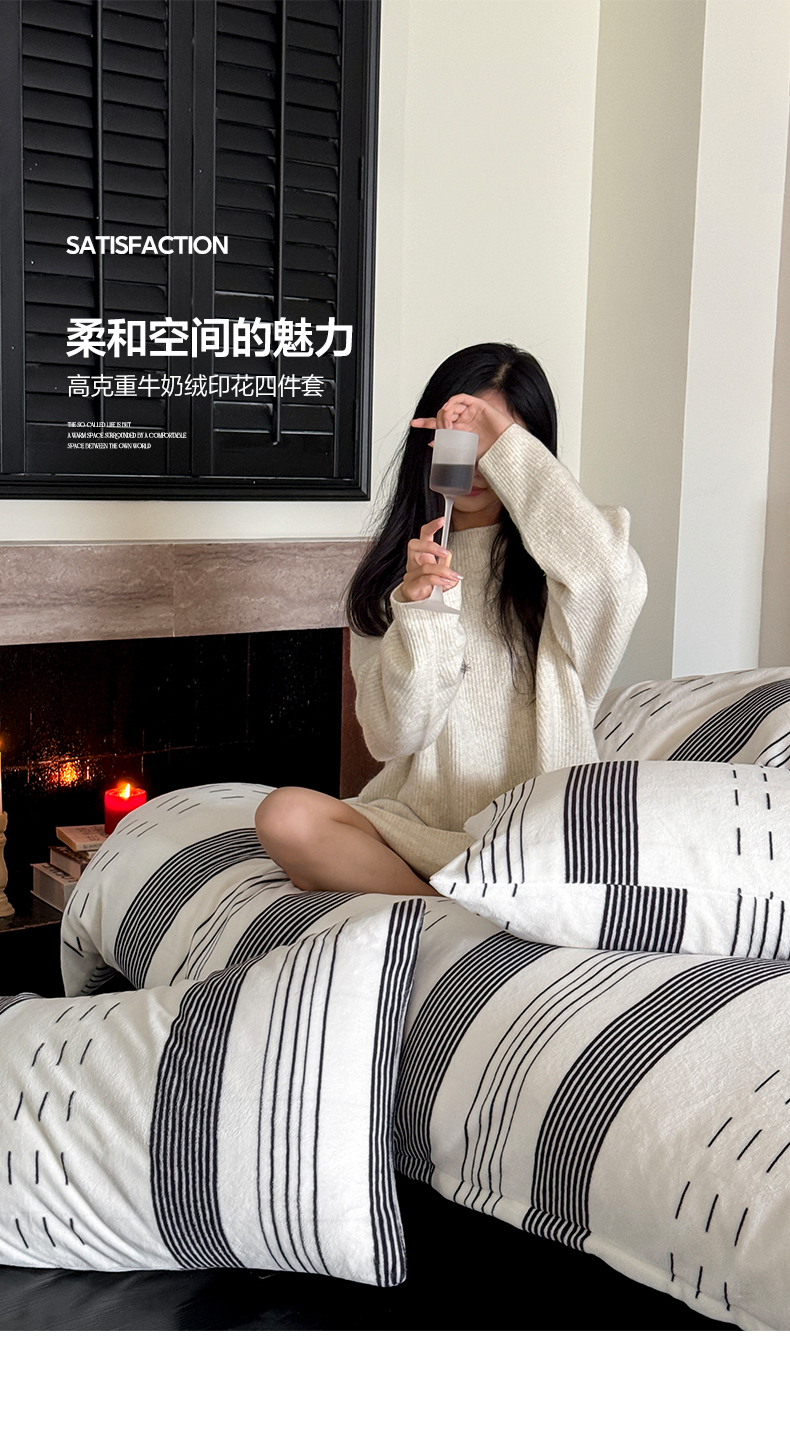 商品名称:山舍家居 2024新210克款高克重牛奶绒印花四件套-芦笙向晚 芦笙向晚-黑