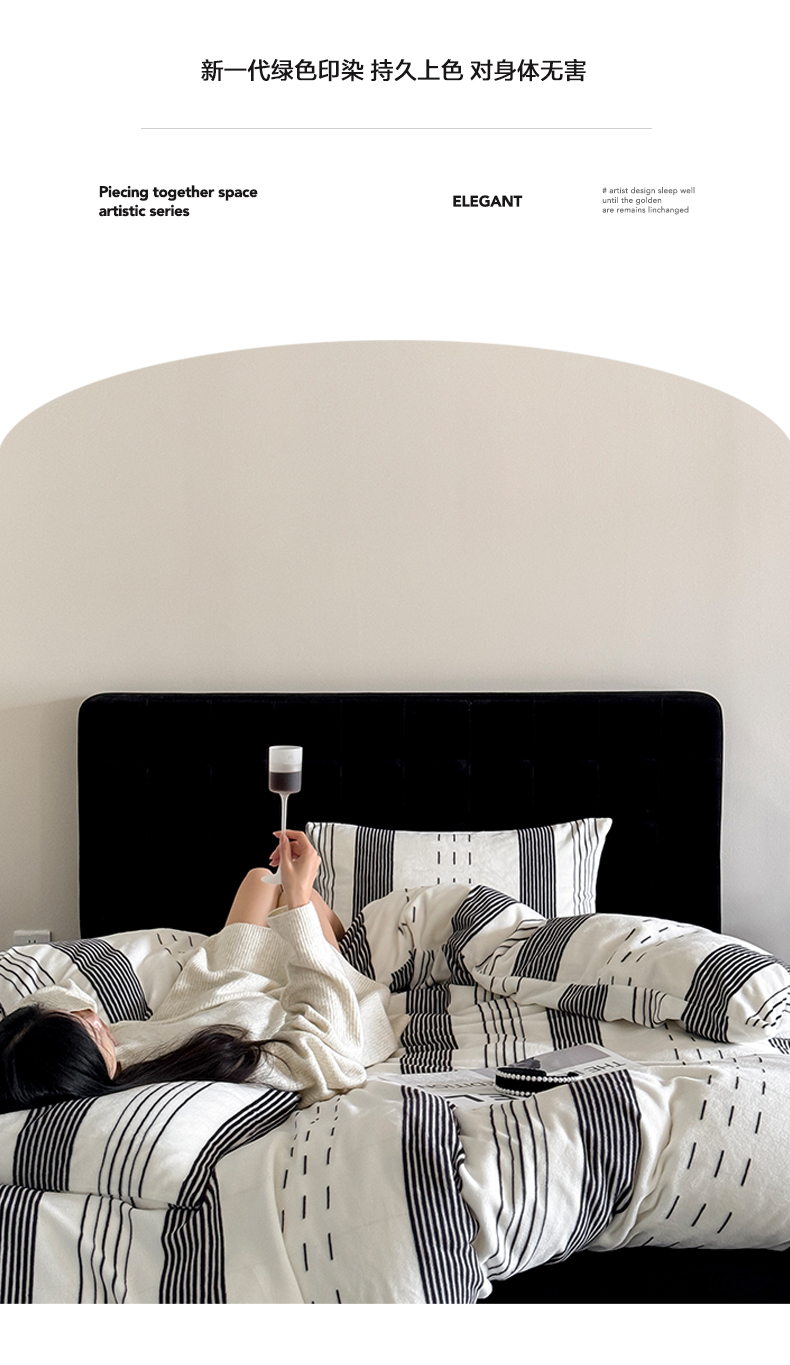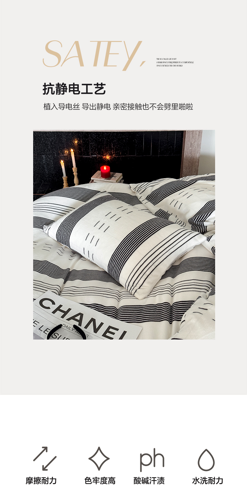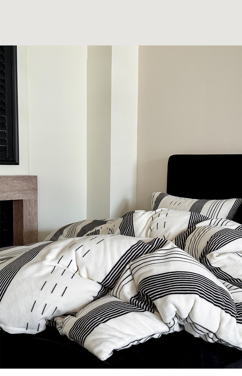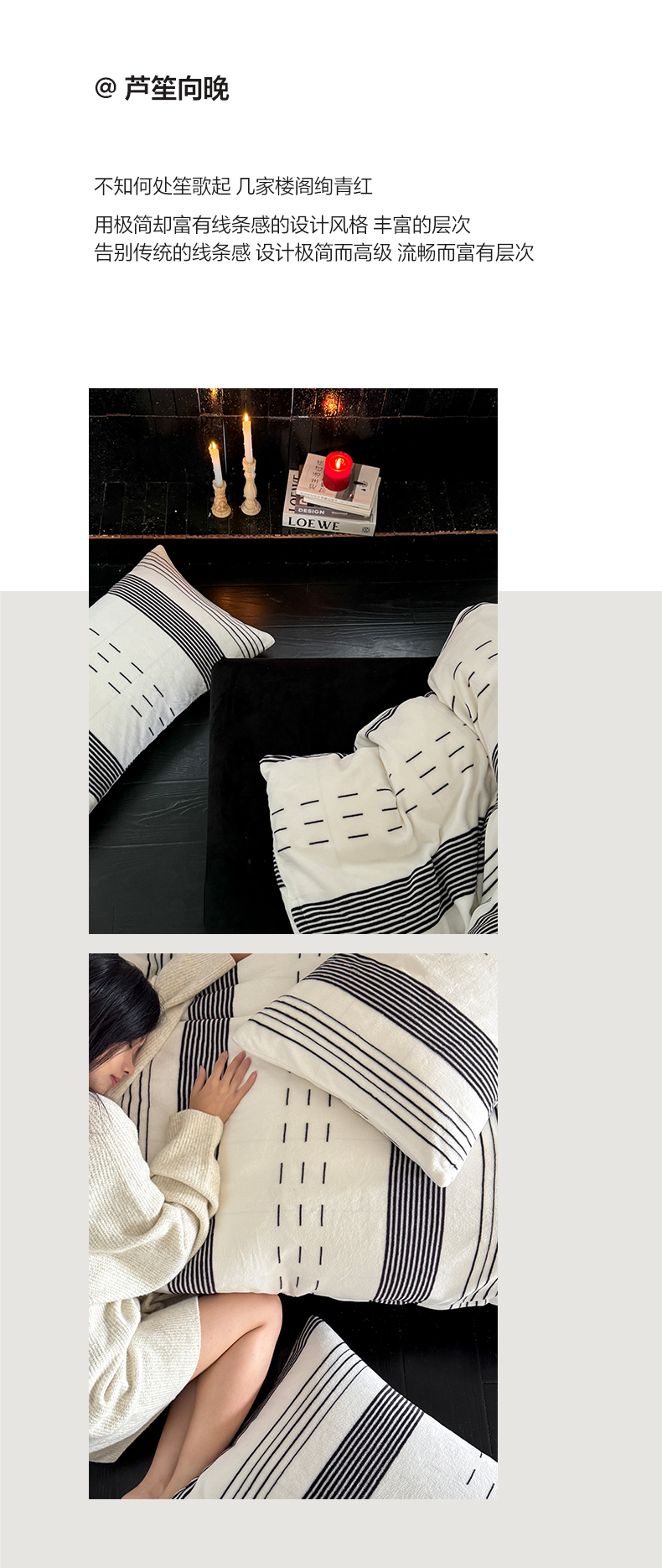 商品名称:山舍家居 2024新210克款高克重牛奶绒印花四件套-芦笙向晚 芦笙向晚-黑