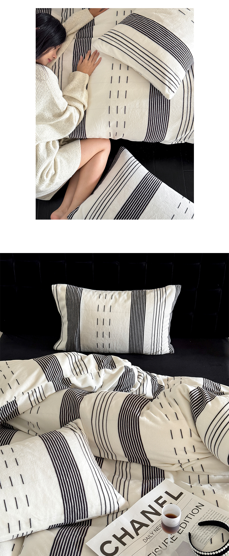 山舍家居 2024新210克款高克重牛奶绒印花四件套-芦笙向晚 芦笙向晚-黑