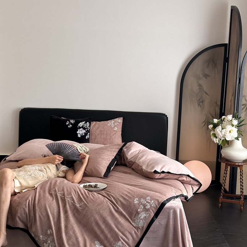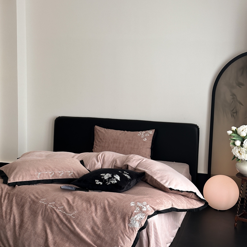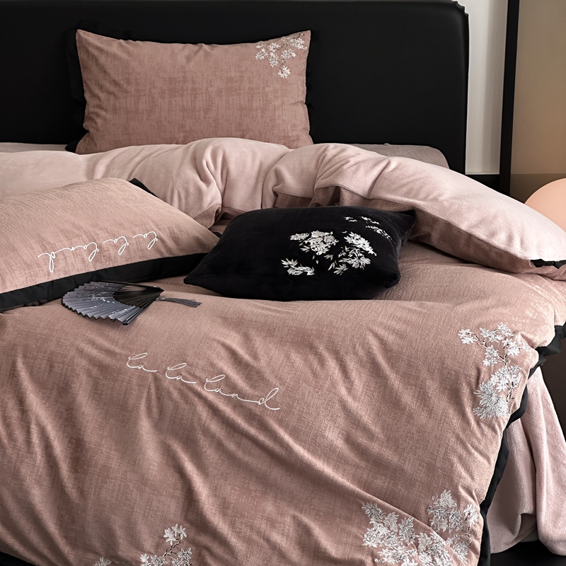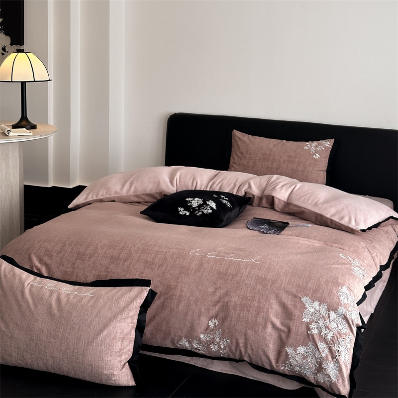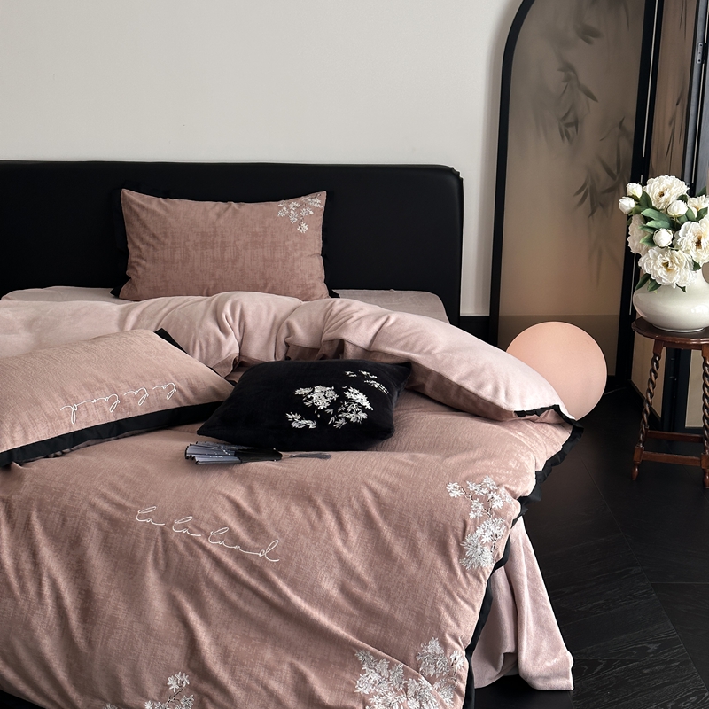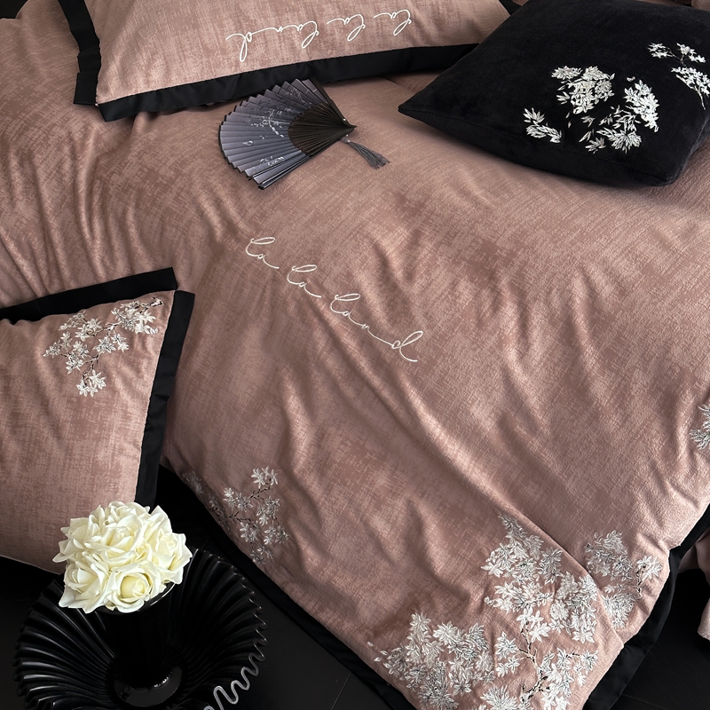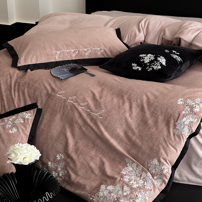 赫帛 2024新款刺绣鎏金绒四件套-夕雾 夕雾-灰粉色