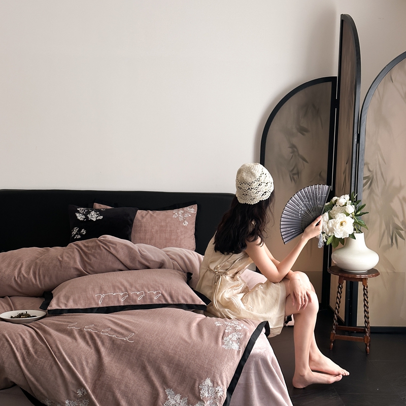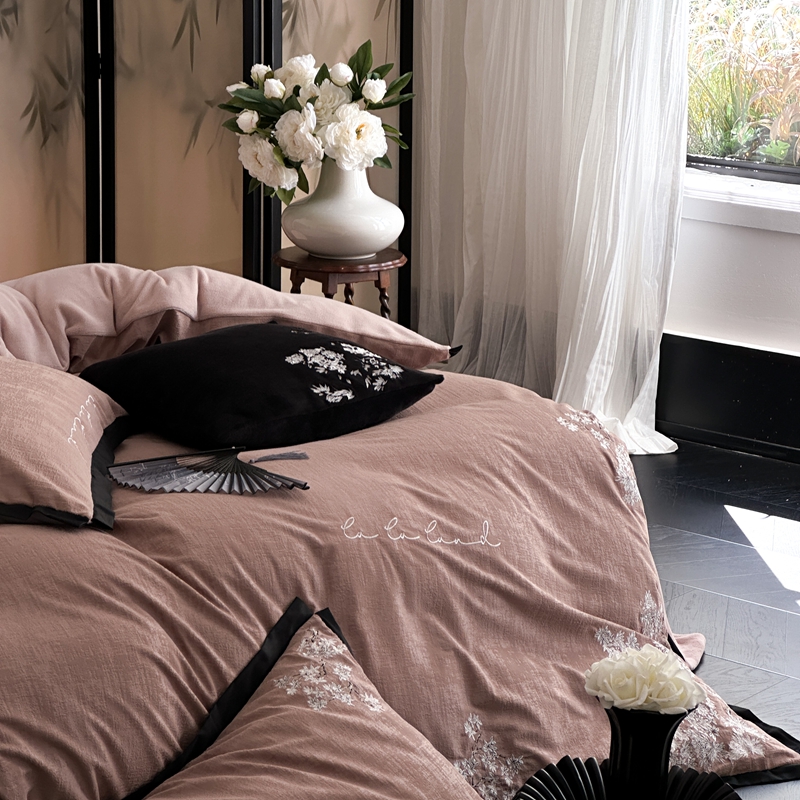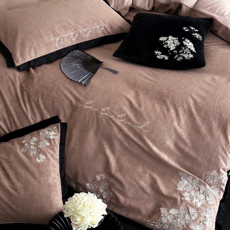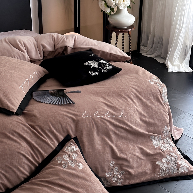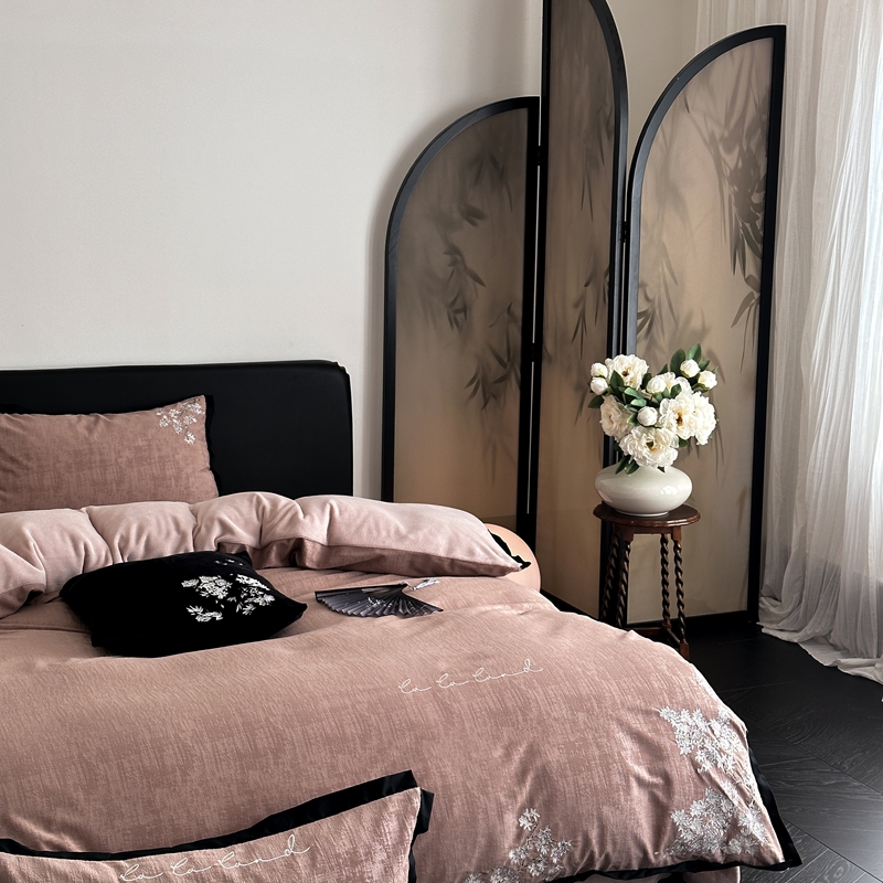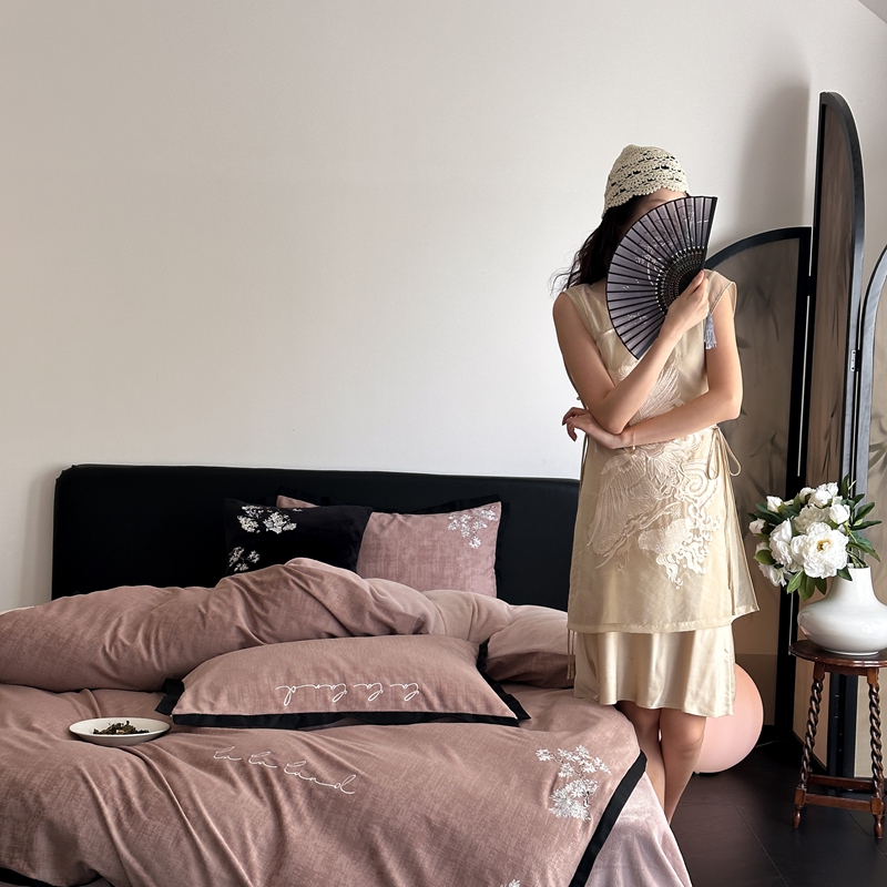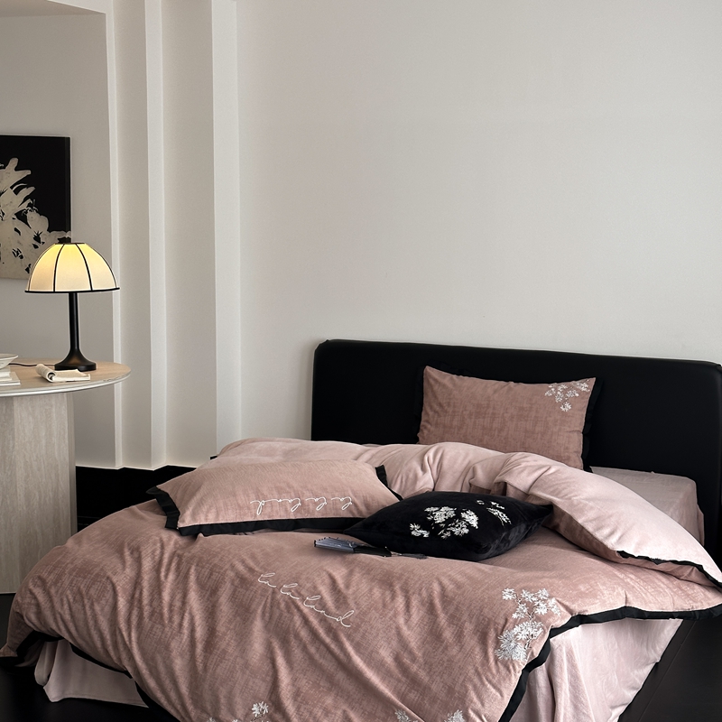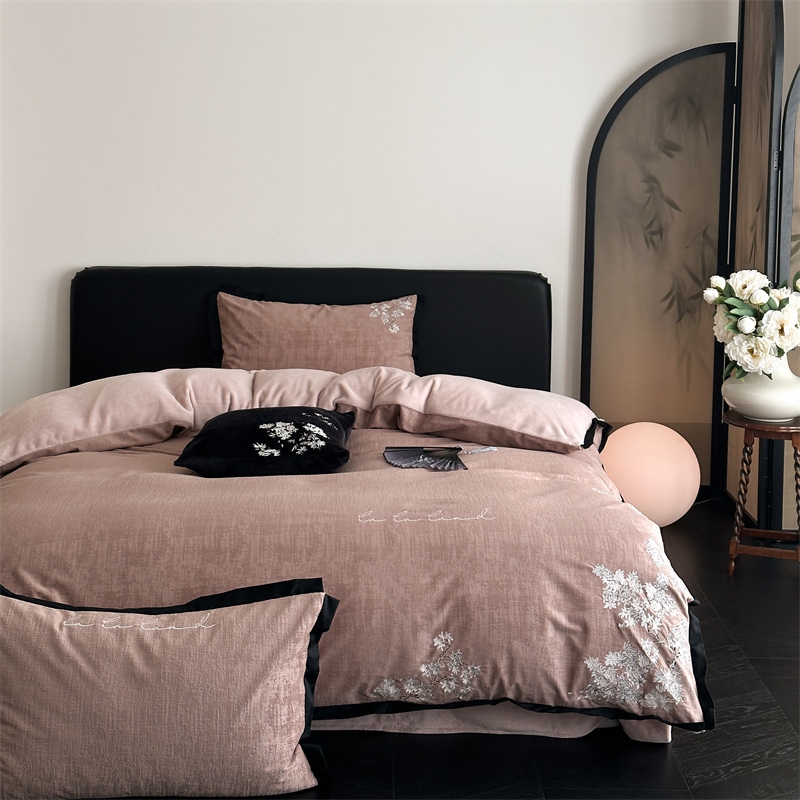 赫帛 2024新款刺绣鎏金绒四件套-夕雾 夕雾-灰粉色