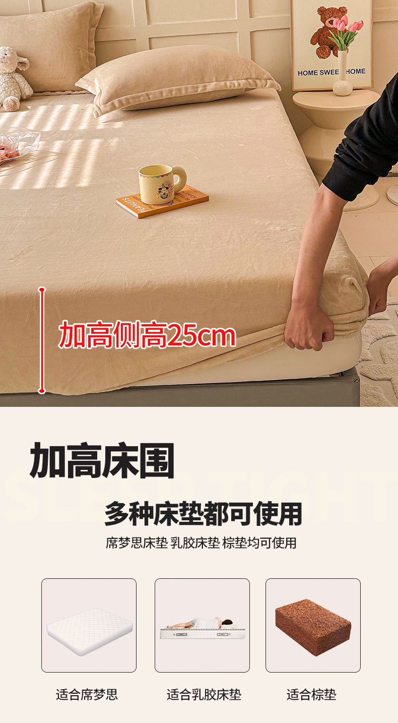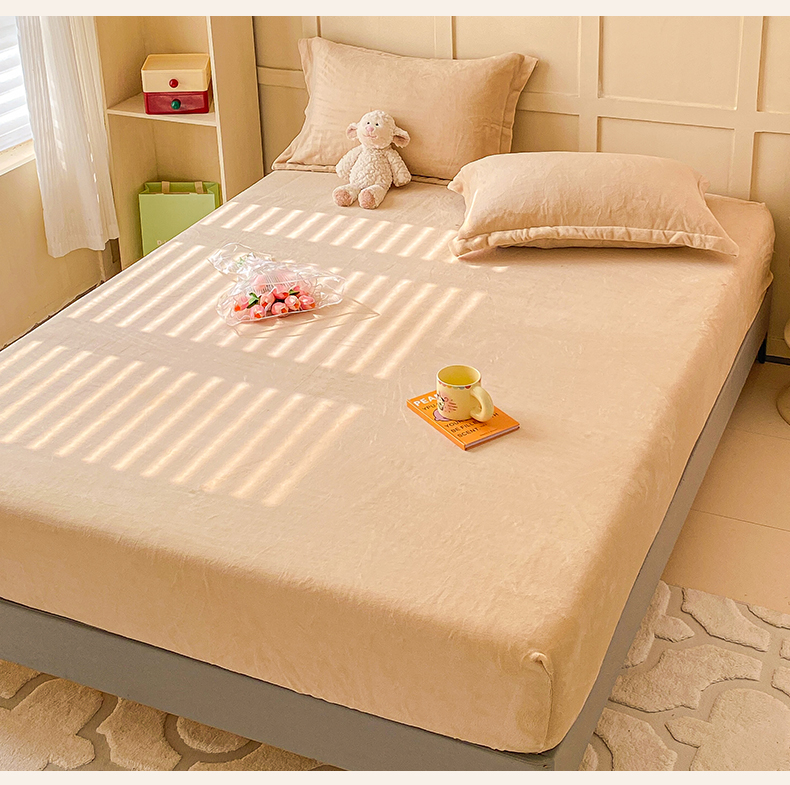恬澳家纺 2025 200g牛奶绒床笠外贸跨境电商亚马逊速卖通床笠三件套欧美尺寸多多跨境平台TEMU SHEIN 暖阳-奶黄色