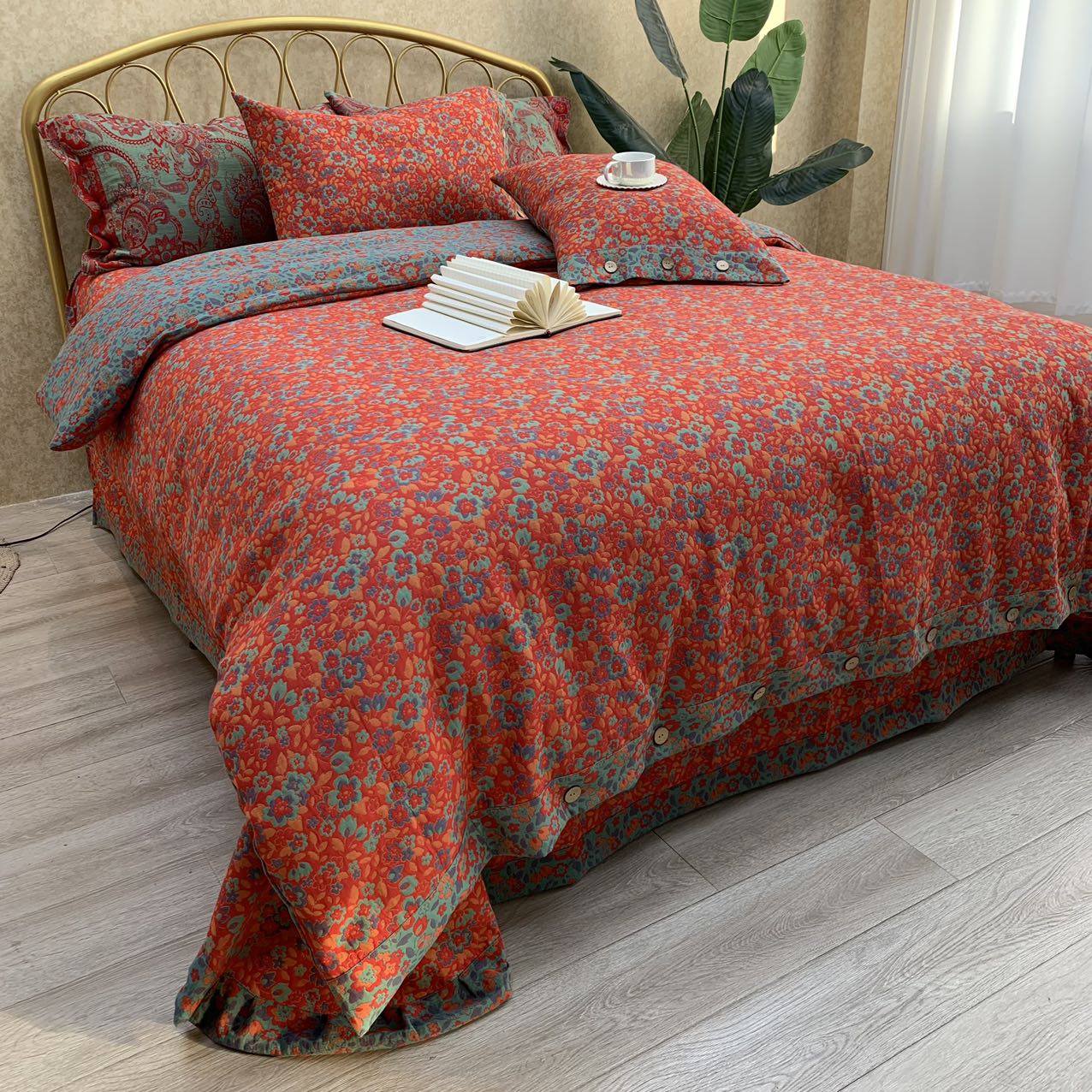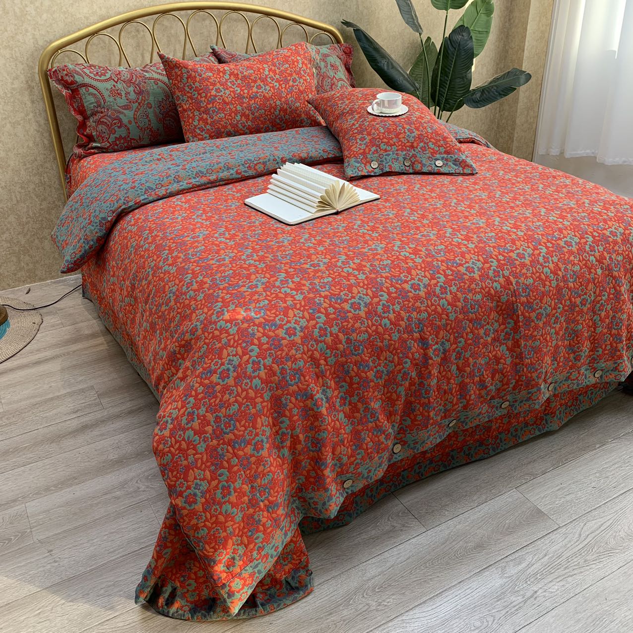 (总)鲁爱家纺供货 2025新款韩版色织提花四件套,花都-灰,花都-咖,兰亭序-豆沙,梅醉春秋-粉,梦蝶-浅咖,鸟语花香-浅咖,醉云间-绿