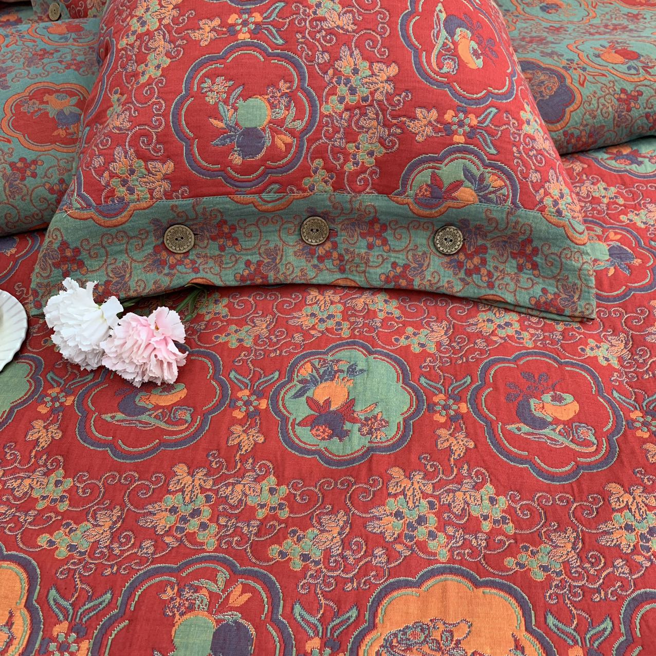 (总)鲁爱家纺供货 2025新款全棉色织提花秋冬被,玫瑰庄园-豆沙,醉云间-咖,醉云间-兰,醉云间-绿,玫瑰庄园-灰