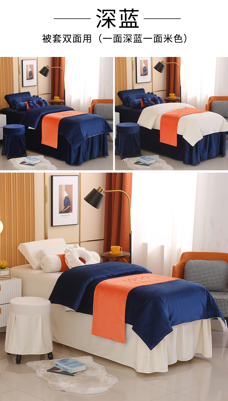 琪宝阁 2024新款立丝绒美 容床罩套件-欧若拉 蓝灰
