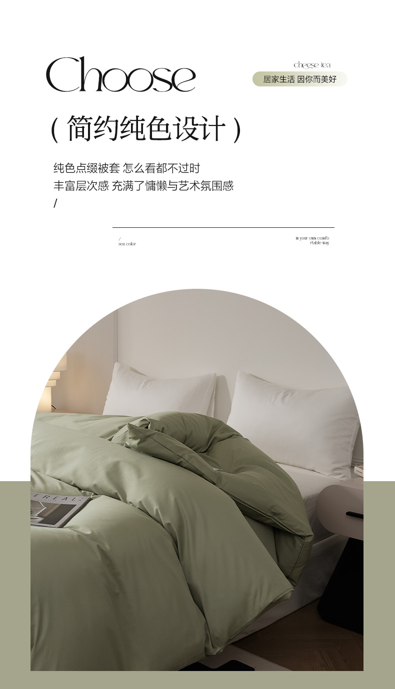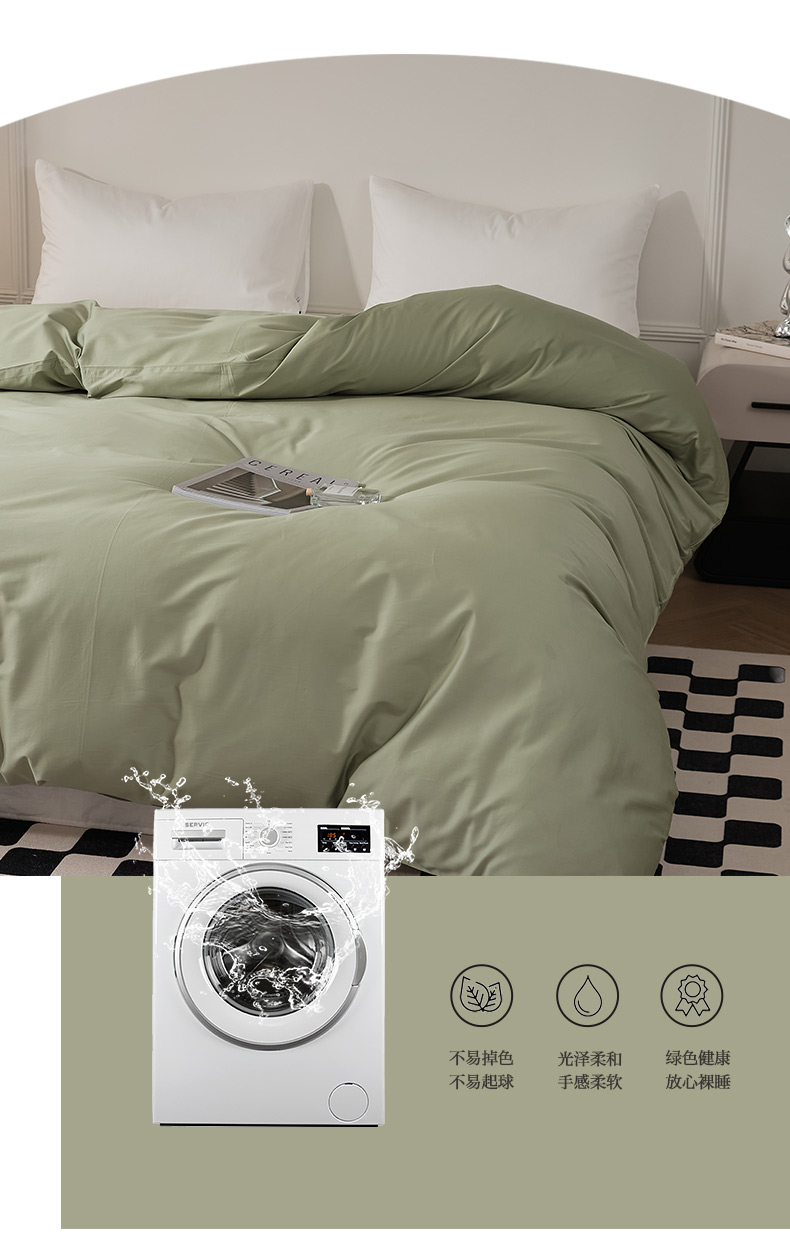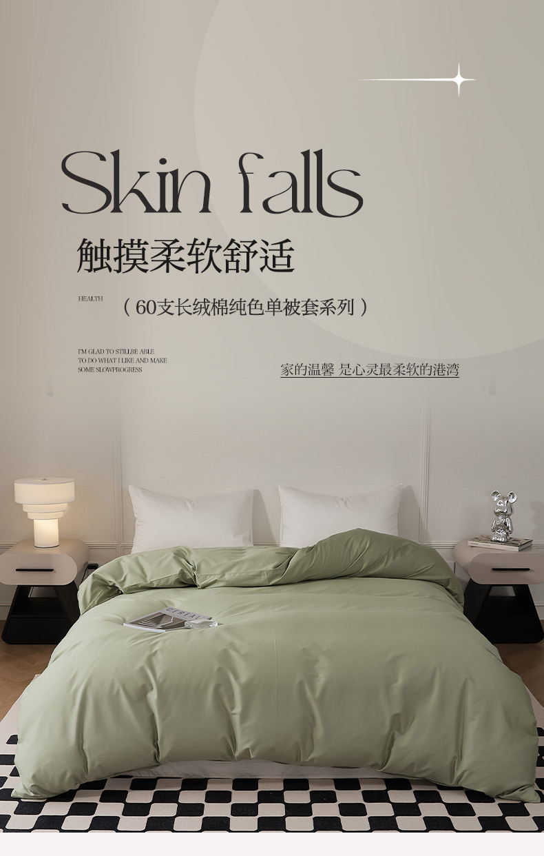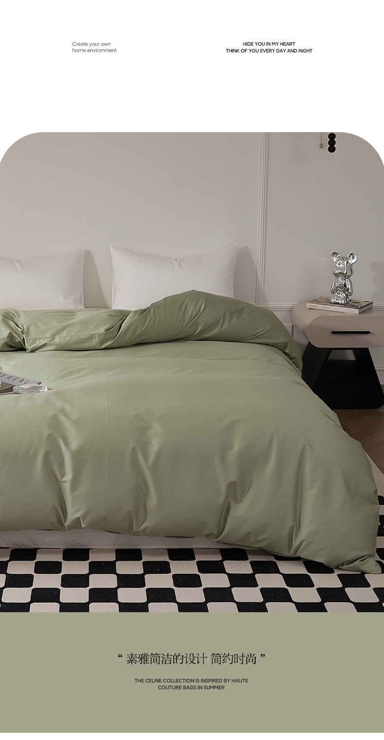 商品名称:EH家居 2024新款60支长绒棉纯色单被套 暮光绿