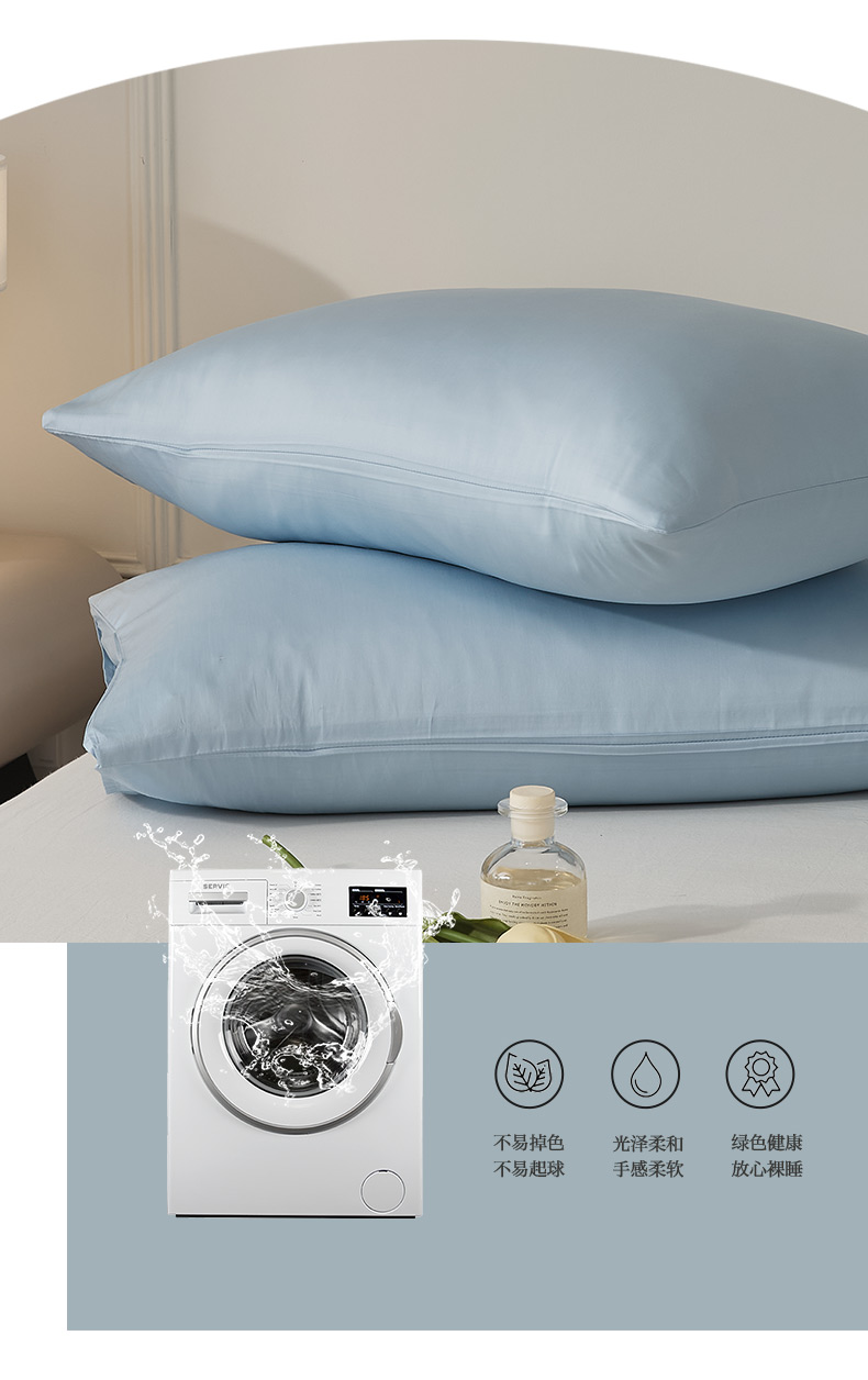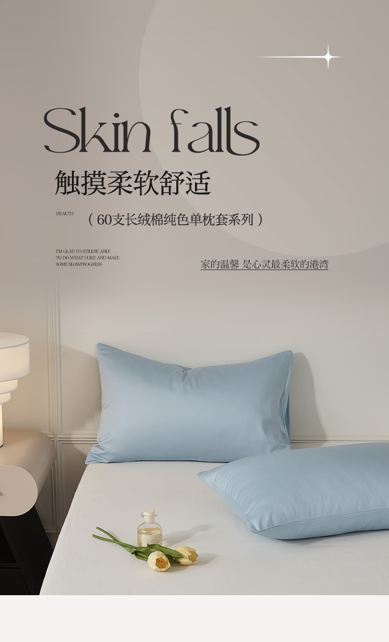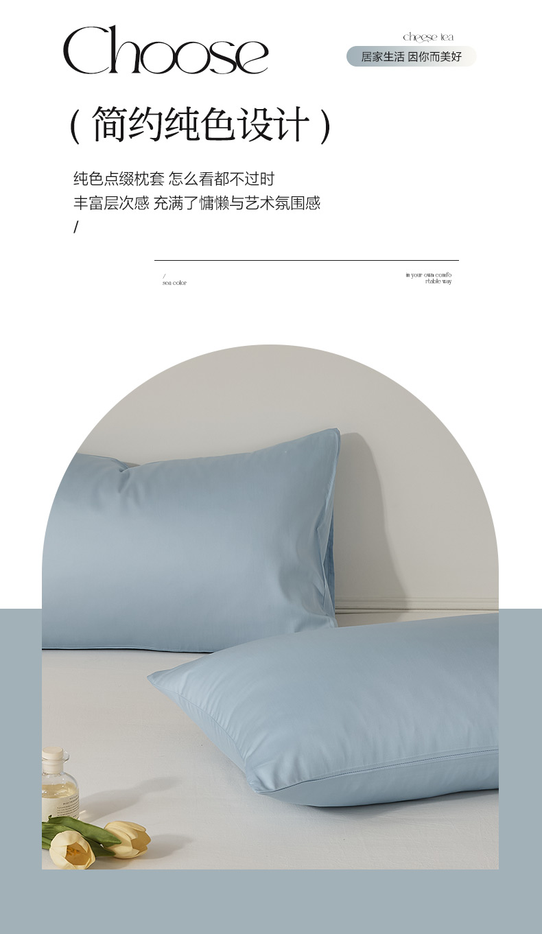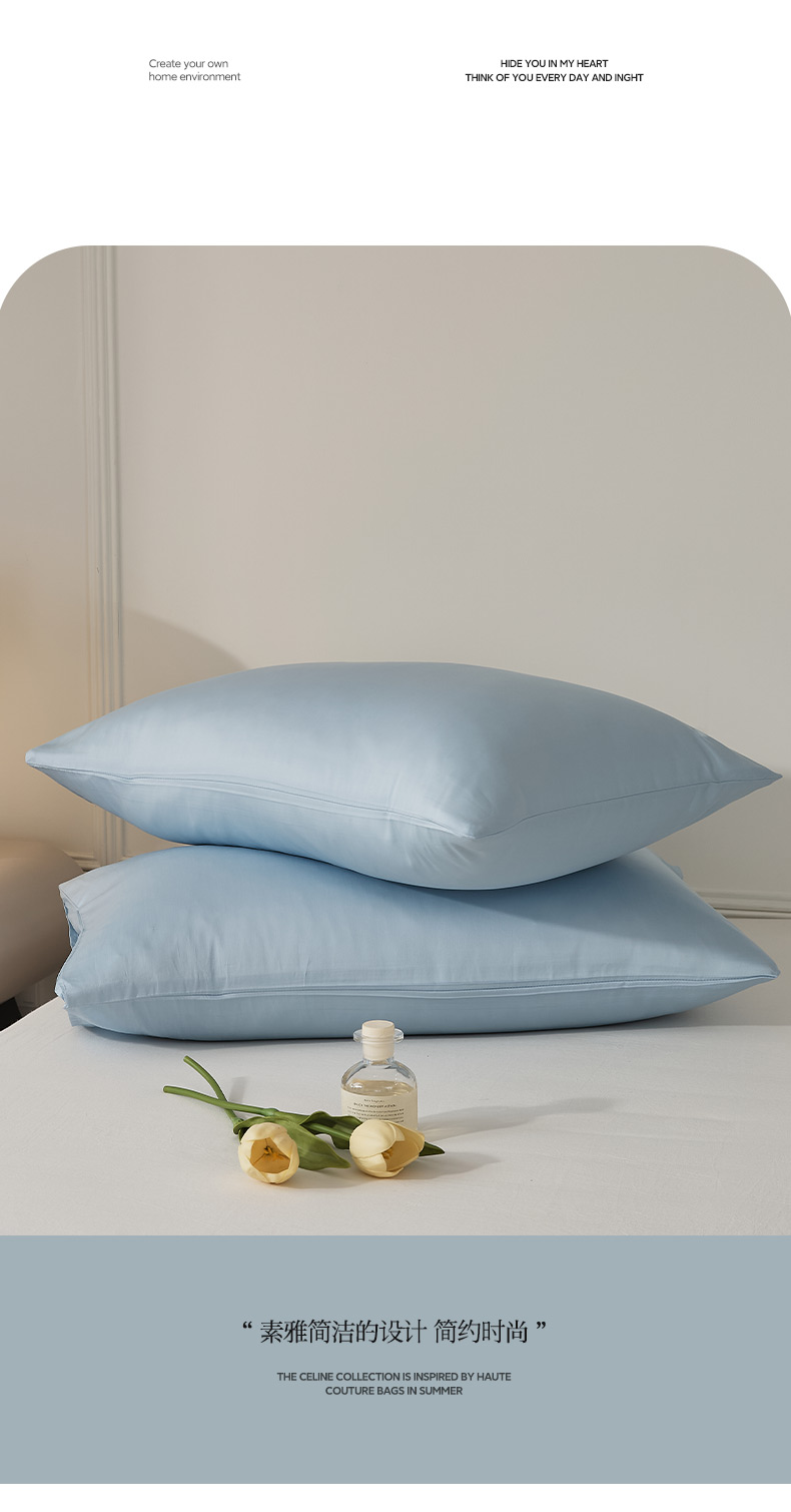 商品名称:EH家居 2024新款60支长绒棉纯色单枕套 柔蓝色