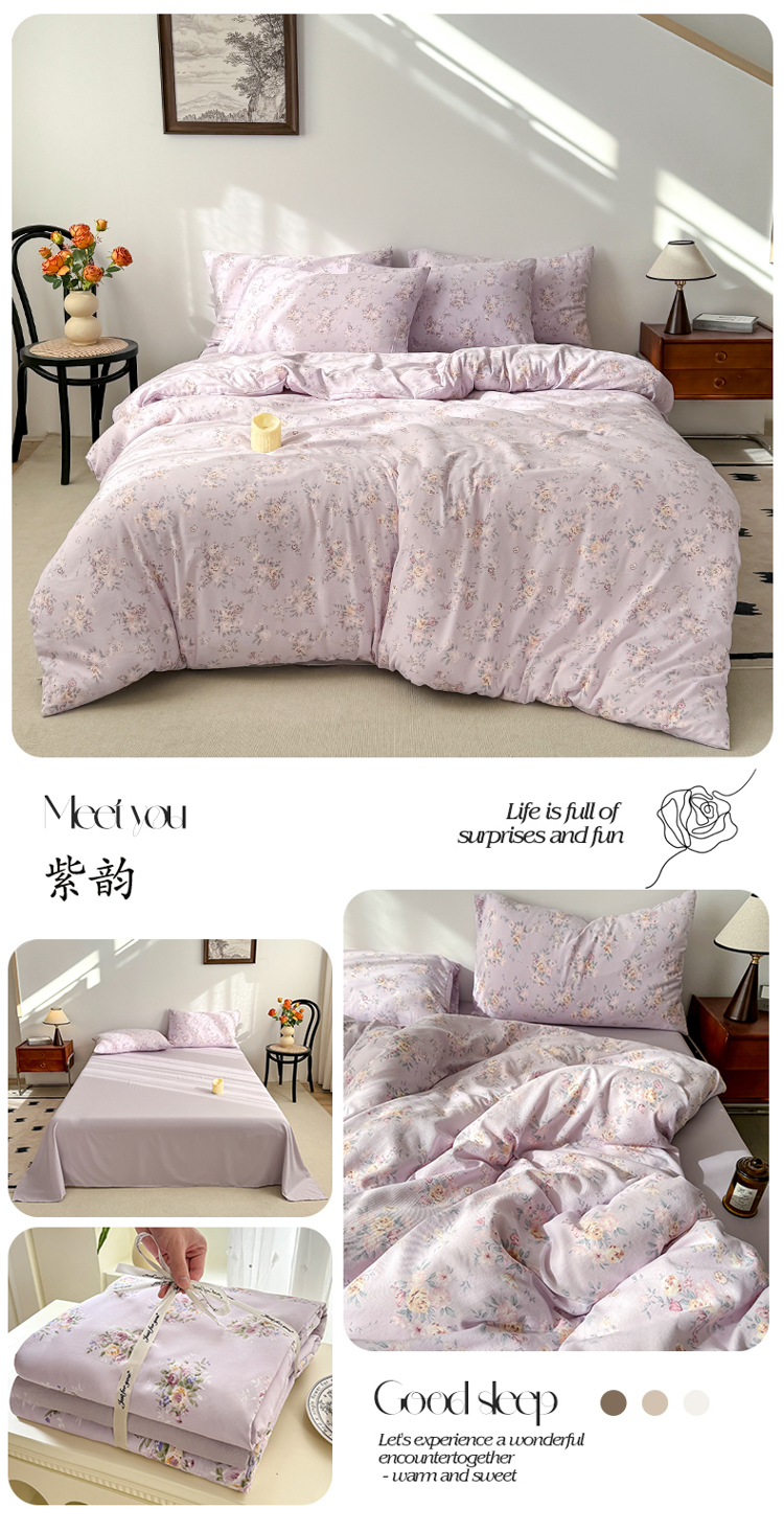漫仙阁家纺 2025年爆款新品有氧双层纱四件套-碎花 紫韵