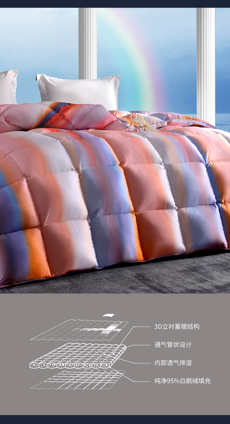 • 91家纺网 家纺一手货源 找家纺 (总)织梦人羽绒工厂店 2025新款高端100支长绒棉德国进口软银丝全棉95鹅绒羽绒被,凤翎-黑金