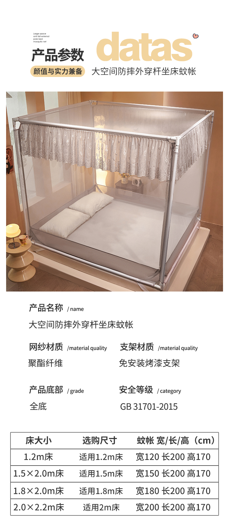 (总)艺利轩蚊帐 2025新款床笠式大空间防摔坐床蚊帐-紫荆花,薄荷绿,奶昔白,柠檬黄,蜜杏色,青春蓝,玉粉色